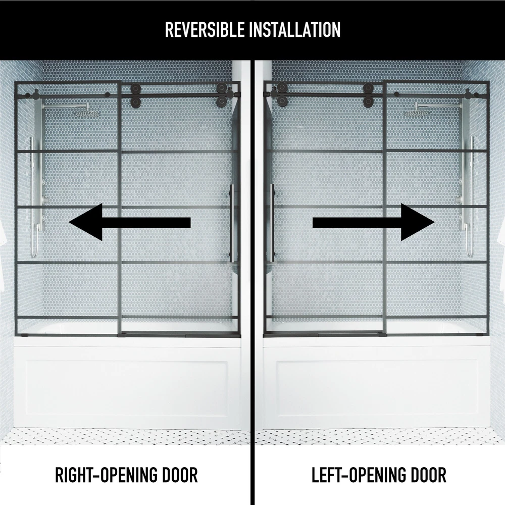 Transform your bathroom with the VIGO Elan Adjustable Sliding Shower Door in Matte Black. This frameless shower door is equipped with proprietary Roller Disk Technology and SmartAdjust Technology, allowing for up to ? inches of adjustability to ensure a perfect fit. The Flex-Sizing feature offers 4 inches of horizontal adjustability during installation, accommodating varying spaces. The tempered glass is ANSI and 16 CFR 1201-certified for safety and durability, while the metal threshold prevents water leaks. The shower door's matte black finish complements the French door-inspired grid design for a unique, lightweight look. With reversible installation and all parts included, this shower door offers convenience and durability.Features: Flex-Sizing TM: offers 4 in. of horizontal Free Shipping Over $49.99* Details VIGO Elan Frameless Sliding Door Product Description: Transform your bathroom with the VIGO Elan Adjustable Sliding Shower Door in Matte Black. This frameless shower door is equipped with proprietary Roller Disk Technology and SmartAdjust Technology, allowing for up to ? inches of adjustability to ensure a perfect fit. The Flex-Sizing feature offers 4 inches of horizontal adjustability during installation, accommodating varying spaces. The tempered glass is ANSI and 16 CFR 1201-certified for safety and durability, while the metal threshold prevents water leaks. The shower door's matte black finish complements the French door-inspired grid design for a unique, lightweight look. With reversible installation and all parts included, this shower door offers convenience and durability. Features: Flex-Sizing TMoffers 4 in. of horizontal adjustability Roller Disk TMprovides up to ? inches of adjustability Smart Adjust TMaccommodates wall shifts over time Finish Plated TMensures hardware finish is consistent Leak-Free Designprevents water leaks Easy to Cleanhigh-quality stainless steel hardware easily wipes clean Grid PatternFrench door inspired grid design Premium FinishVIGO’s 7-layer coating resists rust, corrosion, and tarnish Convenient Door Handleglass door is pre-drilled for handle installation Tempered Glass3/8-inch thick ANSI and 16 CFR 1201-certified clear tempered glass Easy Walk-In Entryfixed panel with sliding glass shower door allows for easy entry Structural Durabilityrail and wall mount brackets reinforce stability Reversible Installationleft or right-side opening provides versatility Quality Hardwarestainless steel and brass constructed hardware ensures optimal performance All Parts Includedall parts and mounting hardware included Frustration-Freeuser-friendly installation guide for seamless, one-day installation Limited Lifetime Warrantyquality-assured Limited Lifetime Warranty included