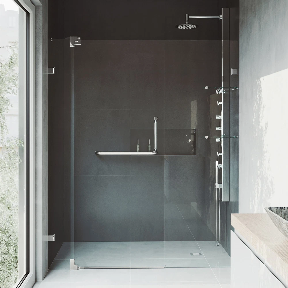 Powered by Frooition Top Products Kitchen Bathroom Lighting Fans Hardware Decor & Organization Vigo VG6042CL60 Piroutte 72" High x 60" Wide Pivot Frameless Shower Door with Clear Glass Overview Item Description Vigo VG6042CL60 Features: Covered under Vigo's limited lifetime warranty and 1 year limited commercial warranty Constructed of durable 3/8" thick tempered glass and complemented by stainless steel profiles and guide rails Coordinates with products from the Piroutte line A frameless design gives a modern, sleek look to the shower Pivot shower door operation gives an impressive look to any shower unit and gives the feeling of more space as you utilize the shower Door opens to the left or right depending upon installation configuration This is a shower door only - a shower base and walls may be required to complete unit NOTE: The biggest challenge in selecting the correct shower door is determining the finished opening width - be sure your desired opening measures between the "Enclosure Width Range" note below Vigo VG6042CL60 Specifications: Overall Height: 72" (bottom to top of door fixture) Overall Width: 60" (left to right of door fixture) Enclosure Width Range: 54" to 60" (range of enclosure sizes door will accommodate) Maximum Door Opening: 26" (assuming door is not trimmed) Opening Direction: Reversible Glass Thickness: 3/8" Why Choose BuildInc? OUR PROMISE TO YOU About Us At Build, we promise to provide the best selection we can, most competitive pricing, and unmatched customer service. Our store has quality home improvement products from trusted manufacturers like Moen, American Standard, Delta, Kraus, Kichler, Progress Lighting, Schlage, Kwikset, Baldwin, Broan, NuTone, Air King, and Rev-A-Shelf. With over 200,000 home improvement products for you to choose from, we have just what you need to get your project done. Fast & Free Shipping We promise to make it our priority to get you your items as fast as we can. We ship from 440 warehouses around the country, ensuring that your product will get to you as soon as possible. We know you're eager to get your hands on your new purchase, we would be too. As a bonus, most items ship for free. Returns We are happy to accept returns of unused or defective items for a refund within 30 days from the date of delivery. For returns outside 30 days, please contact our Customer Service team to go over our options. For full details, please view the Shipping and Payments tab above. To initiate a return simply go to the eBay Returns Portal and submit a return request. We ask that all items be returned with all original components via a traceable method. Once your return is received and processed, we will quickly get your refund or replacement issued. If for any reason you are unsatisfied with your purchase or for product or warranty questions, please contact Customer Service team for assistance. More Items! View more great items Vigo VGSG1914 Noma 14" L x 19" W Silicone Basin Rack For Single - Black $39.90 Shaw RD7HS-3381V Aspire Natural 94" Vinyl Glue Down Reducer - - Woodland Truffle $62.13 Vigo VG6021CL6876 Elan E-Class 76"H x 68"W Sliding Frameless - Black $1,049.90 Kwikset 9800WIFITHRDTSCR-S.TPR.RCALFD Halo Touchscreen Keyless - Black $275.87 About Us | Shipping | Returns | Contact Us | FAQ | Collections | Special Offers! Powered by Frooition Frooition Frooition | No-js Template | eBay design, eBay store design, eBay shop design, eBay template design, eBay listing design (ver:froo_no_js) This listing is currently undergoing maintenance, we apologize for any inconvenience caused.