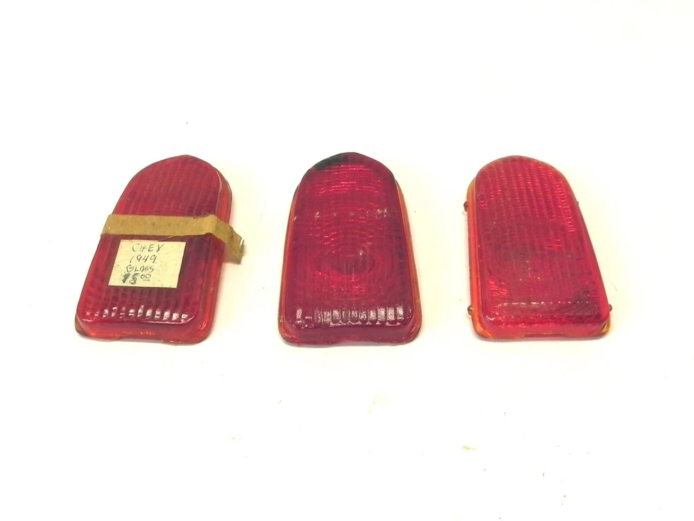 VINTAGE 1949-1950 CHEVY TAIL LIGHT LENSES LOT OF 22 PLASTIC & GLASS PRE-OWNED VINTAGE 1949-1950 CHEVY TAIL LIGHT LENSES LOT OF 22 PLASTIC & GLASS PRE-OWNED See photos below for details. Contents included will be pictured. ABOUT US Jones Vintage Parts has been a family-owned business for over 40 years. We specialize in rare and vintage NOS and used parts for all makes and models from the teens to the 70s. We're passionate about uncovering and restoring the stories of the treasures from your grandparents and great grandparents history. We believe in breathing new life into the world's first modes of transportation. New vintage all the time! SHIPPING INFORMATION Purchased items will generally ship Monday through Friday, within 3 days via USPS Flat Rate or First Class upon payment receipt. Larger items will be shipped via FedEx Ground or UPS. Multiple same-day purchases will be combined for discounted shipping (request a revised invoice to receive bulk shipping discount or notify us of future purchases). International shipping also available. RETURN POLICY Our goal is your satisfaction. If you are unhappy with your order for any reason items may be returned for parts credit within three (3) days of receipt, and you will be charged a 10% restocking fee. There are no shipping refunds. Exchanges will be billed appropriate freight. All return items must be complete, undamaged, unaltered and in resale condition. You may be interested in our other eBay listings . Powered by SixBit's eCommerce Solution