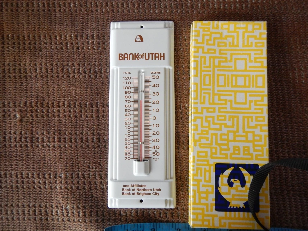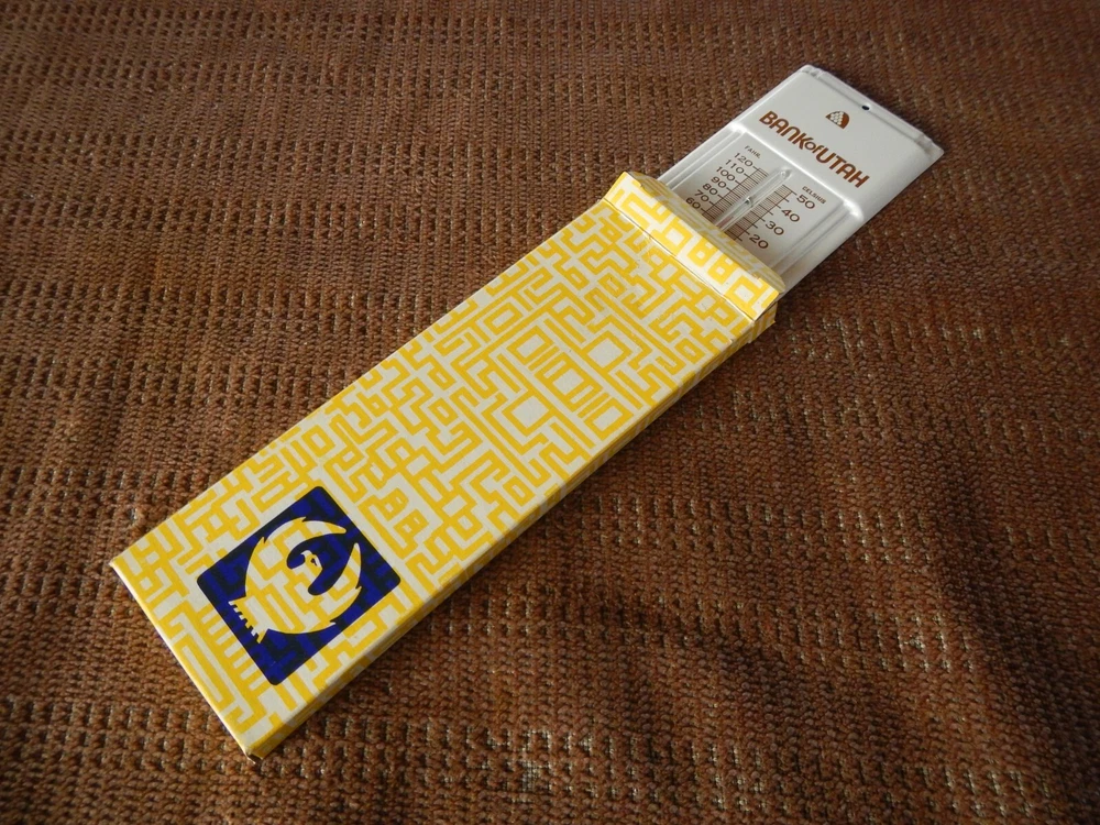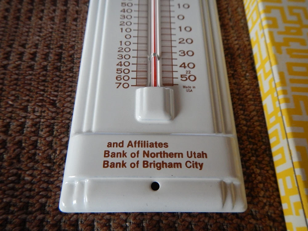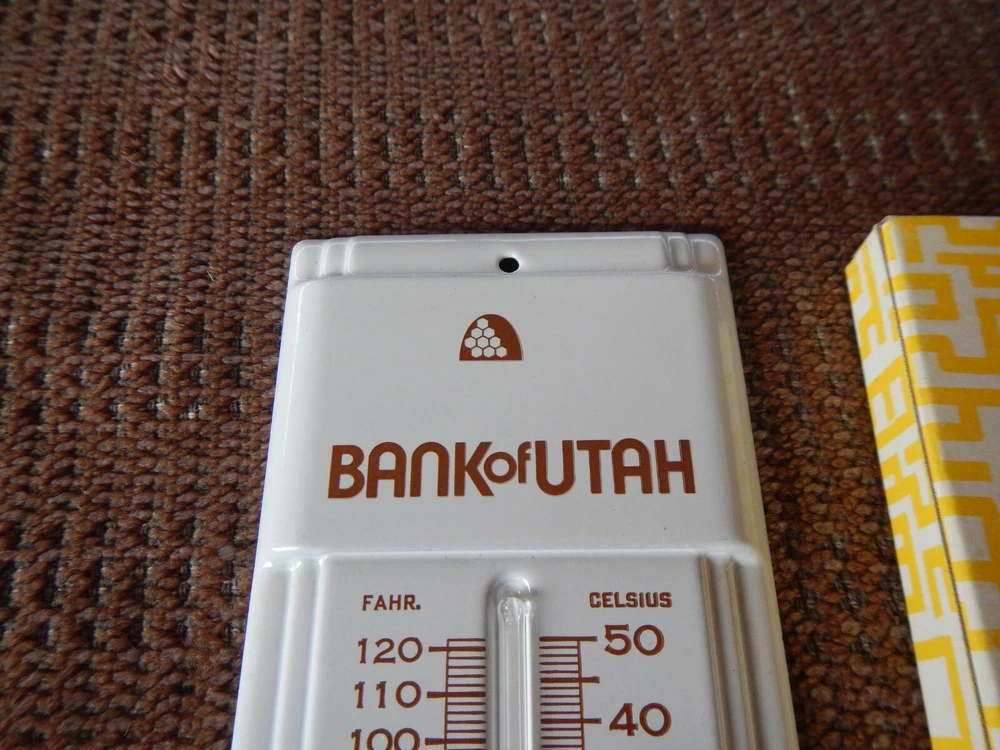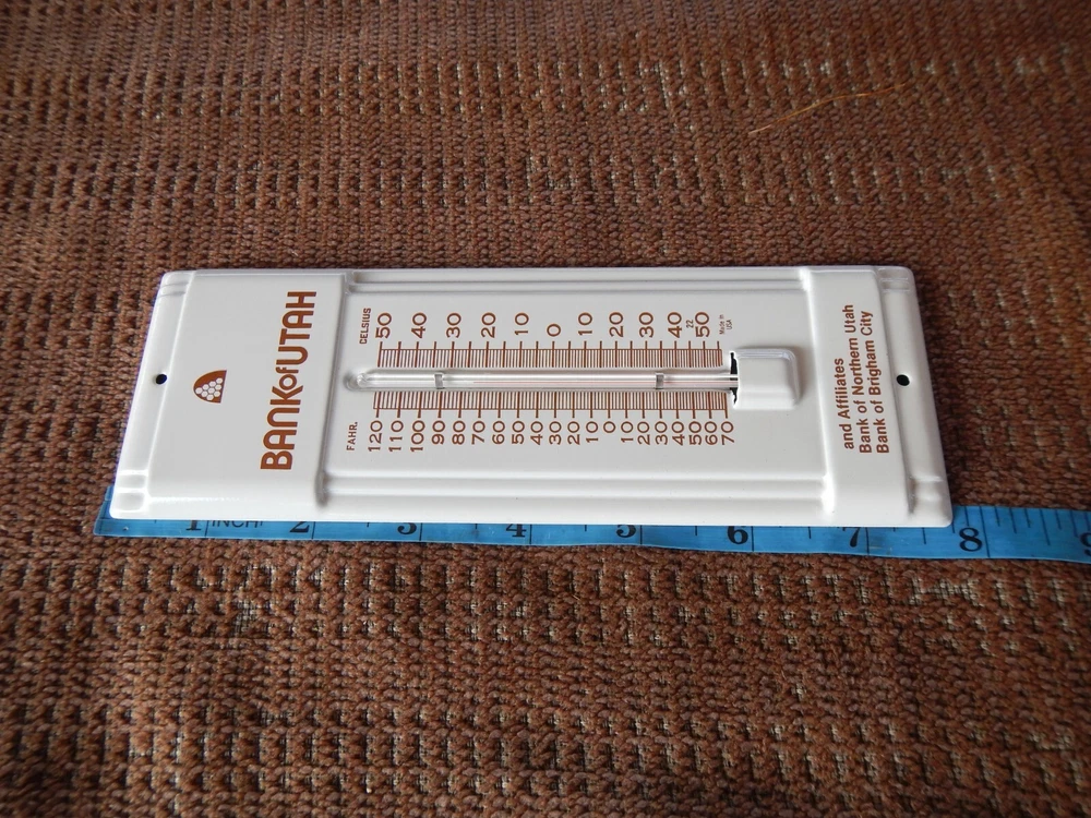 VINTAGE ! TITLE: VINTAGE 1980 ADVERTISING THERMOMETER BANK OF NORTHERN UTAH IN ORIGINAL BOX NOS ! CONDITION: *Vintage NOS item comes in original box and never used. Box may have bent corners, scratches, price stickers or shelf wear. Bright colors! Please read detailed description and see pics of actual item you will win! ITEM: Collectible thermometer with graphics and logos for Bank of Utah. SPECIAL FEATURES: New old stock, never used! Bright colors! Original box may have scruffs, dust, bent corners, price stickers or shelf wear. SIZE: Smaller size: 3 inches wide x 7+ tall (see ruler in pic). *Please see my other listings for more vintage toys. PAYMENT: Please send payment within 3 days. US SHIPPING AND HANDLING: $8.99 US Priority shipping. $5 each additional car or lot. Please, no local pickup. **International shipping (and combined international) is calculated by eBay. RETURN POLICY: Please read descriptions and study pics. If there is any problem when you get your item, please let me know and I'll fix it. Thanks for looking!