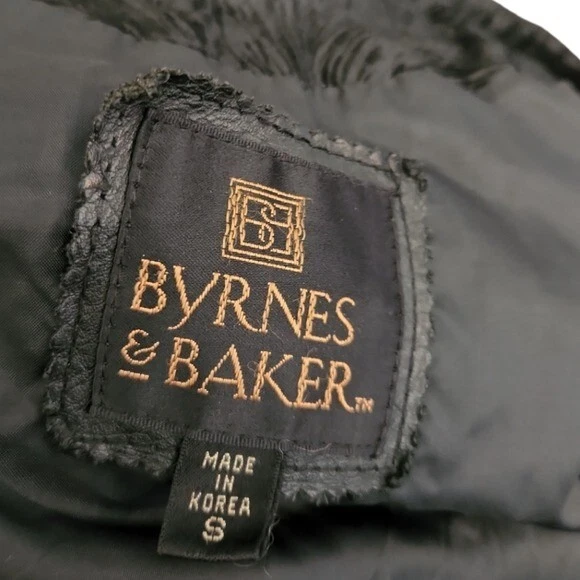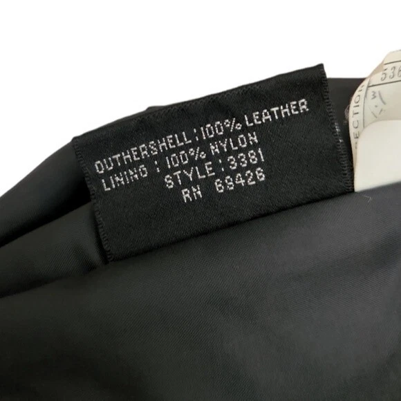 This leather coat is so cool! Vintage as anything, black leather with a paisley-floral style embossed detail around the yoke or shoulders. This does have shoulder pads. It's in very good condition with just a few light spots on one side (puctured)pictured. They are present but not easy to see. Please note that the fit is Oversozed, so the shoulders are bigger and the sleeves a bit shorter. Approximate measurements: Chest - 23" Length - 31" Sleeves - 19" Shoulders - 26" Around the hips area is about 21"