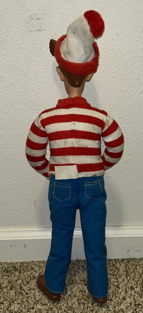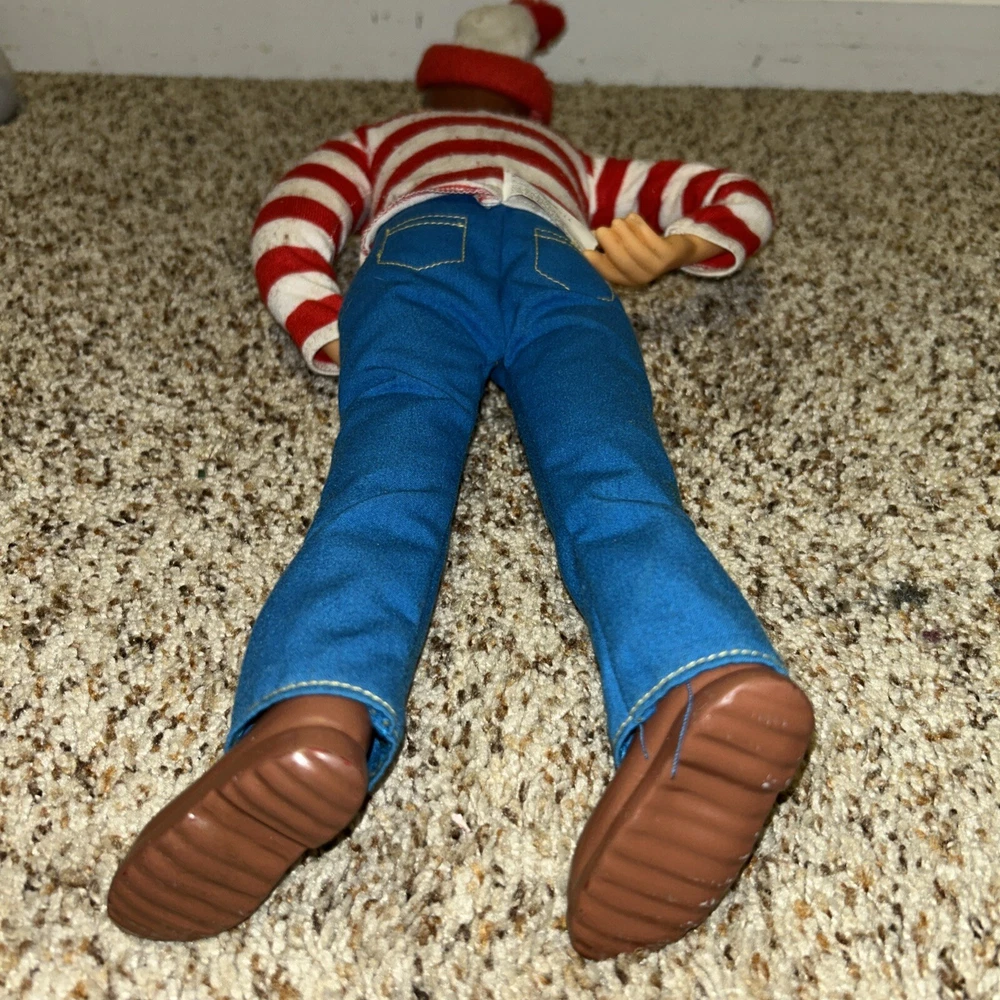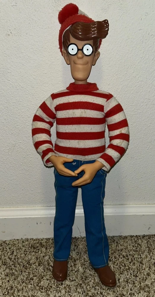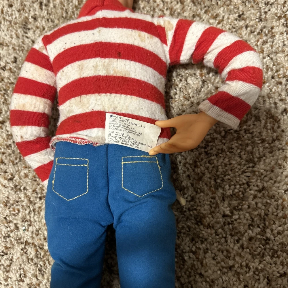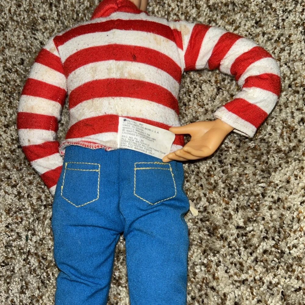 This is a rare and highly sought-after 1991 Mattel Where's Waldo doll, measuring 18 inches tall and featuring poseable joints. The doll is in its original packaging and has never been opened, making it a true collector's item. It was manufactured in China and is part of the beloved character family, WHERE'S WALDO. This vintage doll is perfect for collectors of toys and hobbies, and is sure to be a cherished addition to any collection. Its brand, Mattel, is known for producing high-quality and popular toys that are both fun and durable. Don't miss out on the chance to own this rare and unique doll! See pics for wear