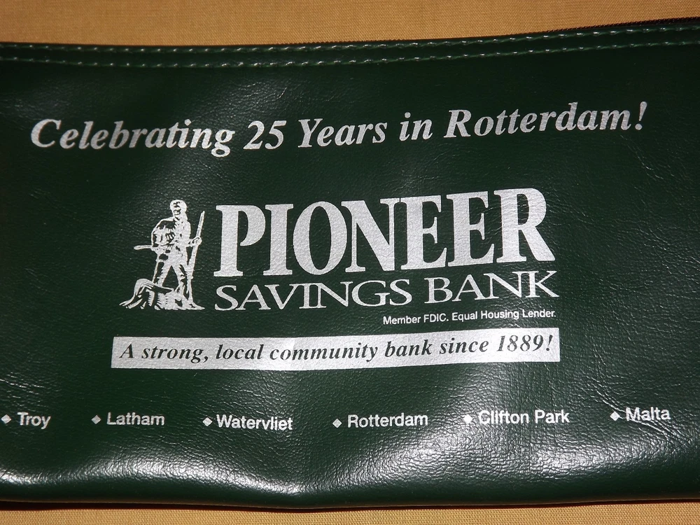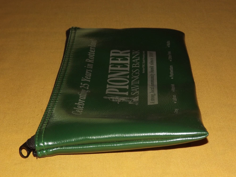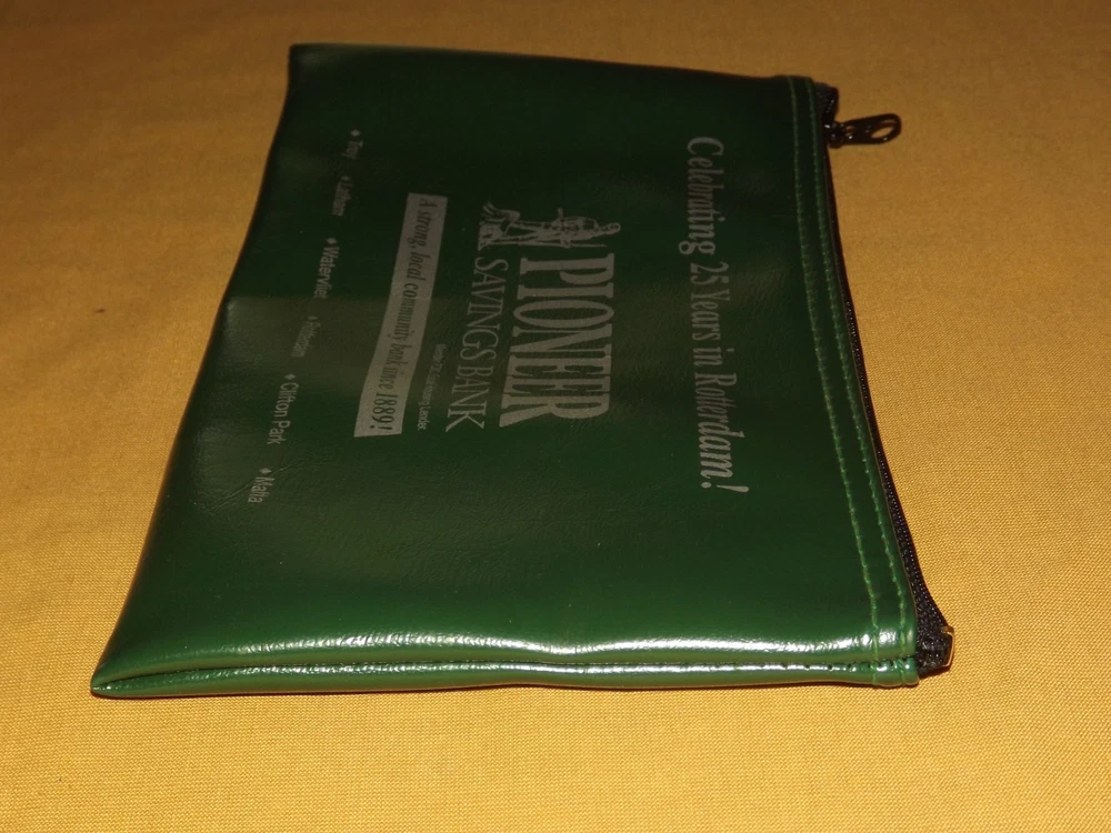 YOU ARE BIDDING ON...... VINTAGE 25 YEARS IN ROTTERDAM PIONEER SAVINGS BANK VINYL DEPOSIT BAG .... ...MEASURES APPROX 10 1/2" X 5 1/2"... SHOWS MINOR USAGE/HANDLING/AGE WEAR.........PLEASE VIEW PHOTOS FOR CONDITION.***PLEASE E-MAIL IF YOU HAVE A QUESTION OR WANT AN ADDITIONAL PICTURE....PLEASE VISIT MY EBAY STORE FOR ADDITIONAL VINTAGE ITEMS..THANK YOU*** BX1490-80-3635
