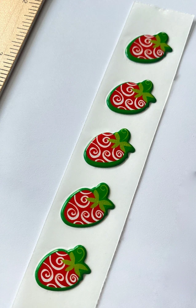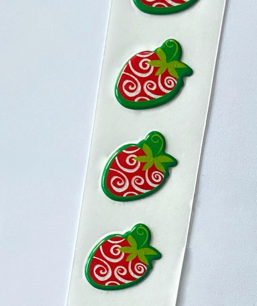 Vintage Set of 8 Count ~ 1980s Puffy Scratch N Sniff Strawberries with Swirls Stickers Vinyl Stick-Ons With Smell -Scent is not guaranteed due to age, but I am still able to smell every sticker. :) Each sticker is carefully unstucked and ready for use, making it easy to create unique and personalized embellishments for your scrapbooking needs. This set is a must-have for any collector or crafter, and is sure to bring a smile to your face. The stickers I am selling are from my Grandmother & Great Grandmother's personal sticker collection. Most are from over 30/40+ years ago. They have been in photo albums, boxes and plastic bags. These stickers are very Rare & in great condition. COLOR MAY VARY FROM DIFFERENT SCREENS PLEASE ASK ANY QUESTIONS YOU MAY HAVE ABOUT THE COLORING OF THIS ITEM BEFORE COMMITTING TO PURCHASING IT PLEASE. Check out my other collections! Thank you.