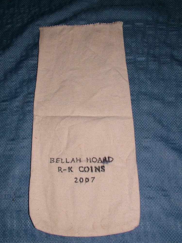 YOU ARE BIDDING ON..... VINTAGE BELLAH HOARD R-K COINS 2007 CLOTH BANK BAG... .....MADE OF CLOTH...............MEASURES APPROX 17" X 7 1/4"....SHOWS SOME USAGE WEAR/AGE DISCOLORATION ..... NO HOLES..PLEASE VIEW PHOTOS FOR CONDITION.***PLEASE E-MAIL IF YOU HAVE A QUESTION OR WANT AN ADDITIONAL PICTURE....PLEASE VISIT MY EBAY STORE FOR ADDITIONAL VINTAGE ITEMS..THANK YOU***