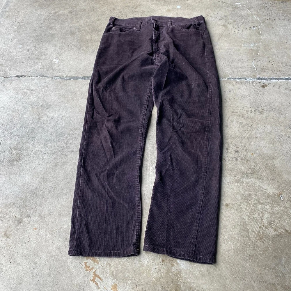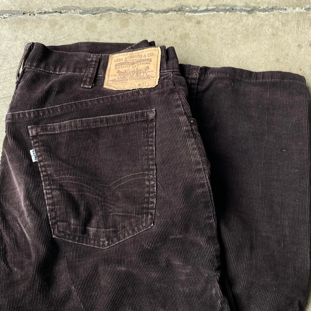 VINTAGE BROWN LEVIS WHITE TAB CORDUROY PANTS 70S MEASURE 33X30 beautiful color measurements, and tag shown in pictures item is preworn and may have defects shipping every wednesday and sunday
