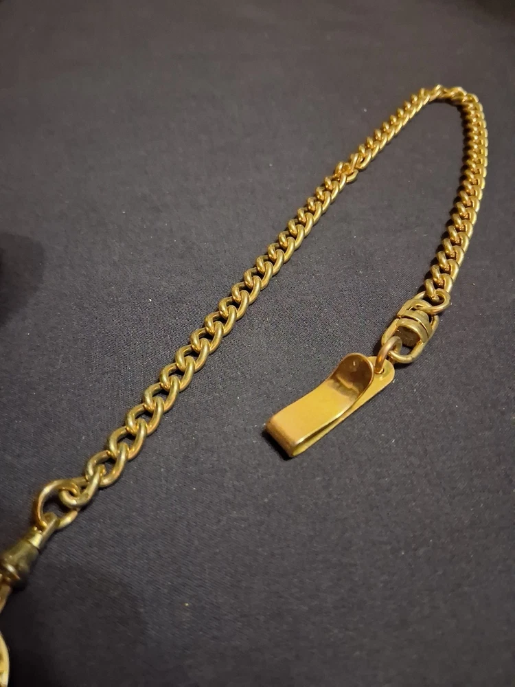 The Vintage Pocket Watch featuring a semi truck and trailer on a gold chain is a unique and stylish timepiece from the brand Brut. This quartz pocket watch with a half hunter closure and polished case finish showcases a yellow gold dial with a 12-hour dial and seconds hand. Manufactured between 1990-1999, this pocket watch includes the original box and booklet, making it a valuable addition to any watch collection. The detailed design of the truck and trailer on the chain adds a touch of transportation theme to the overall casual style of this vintage piece. Check all pictures and ask questions before purchasing.