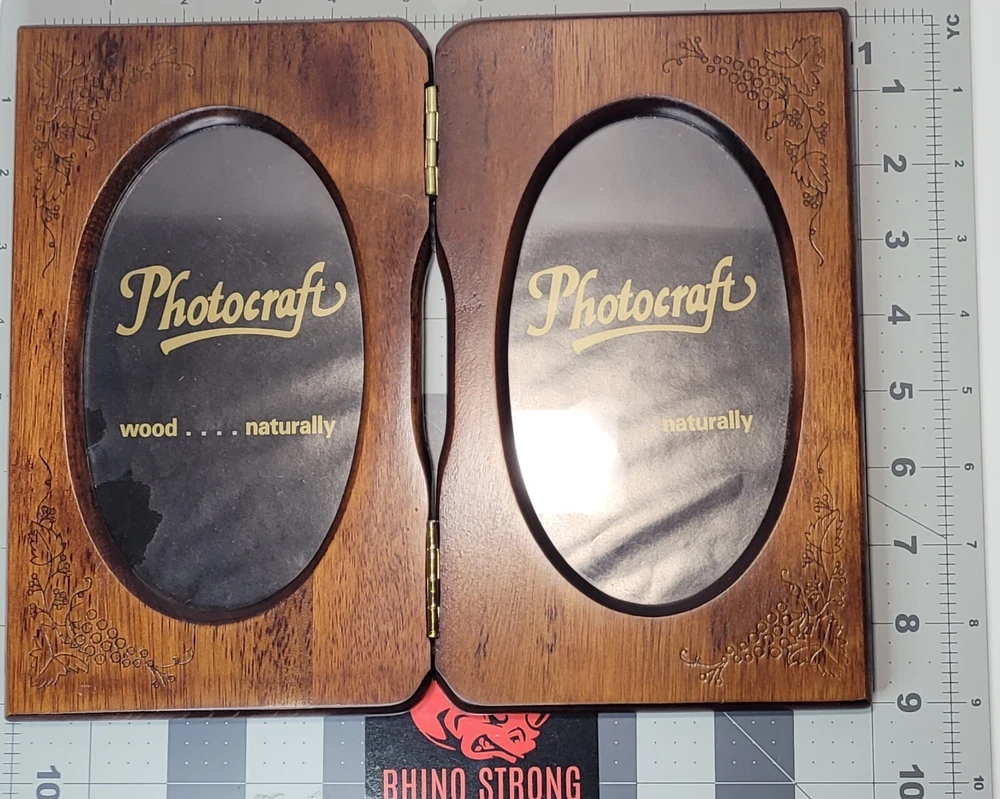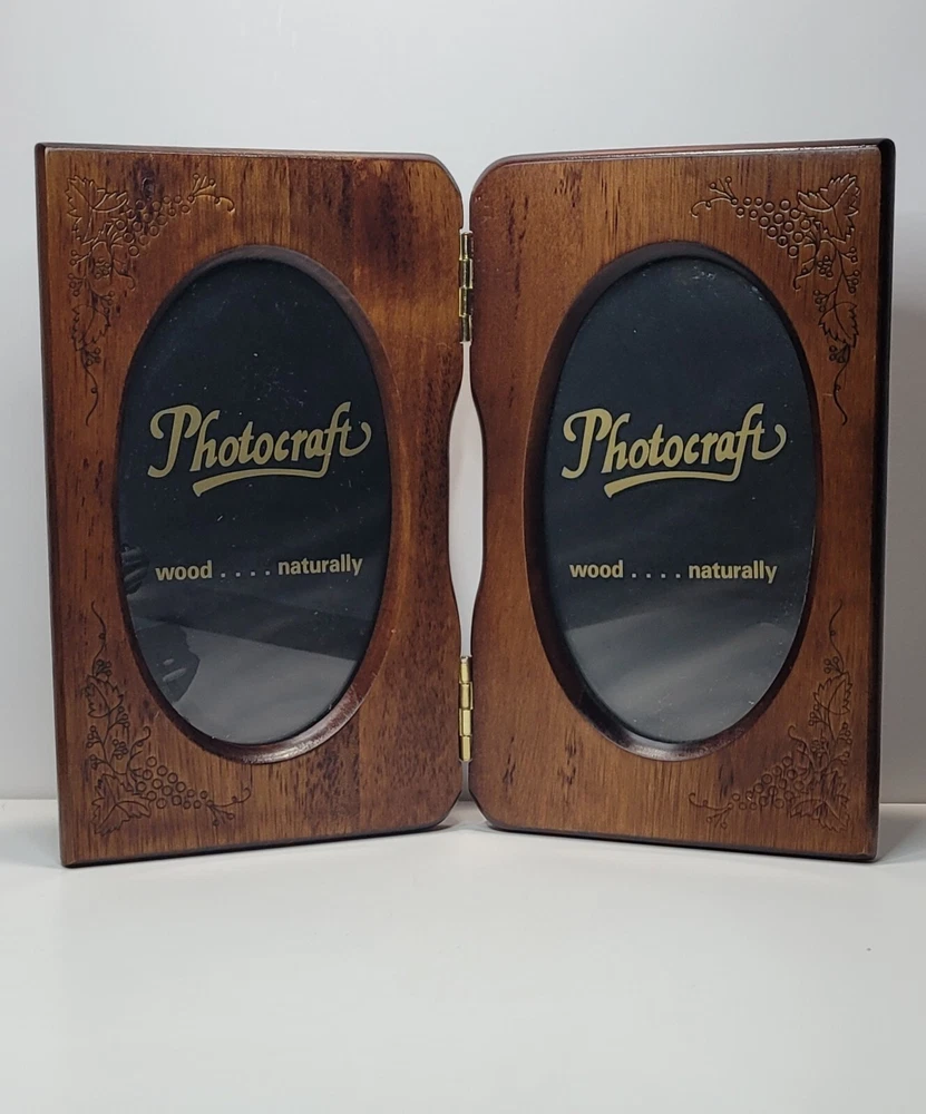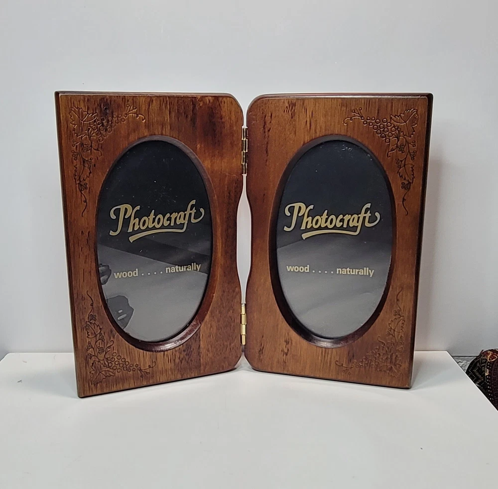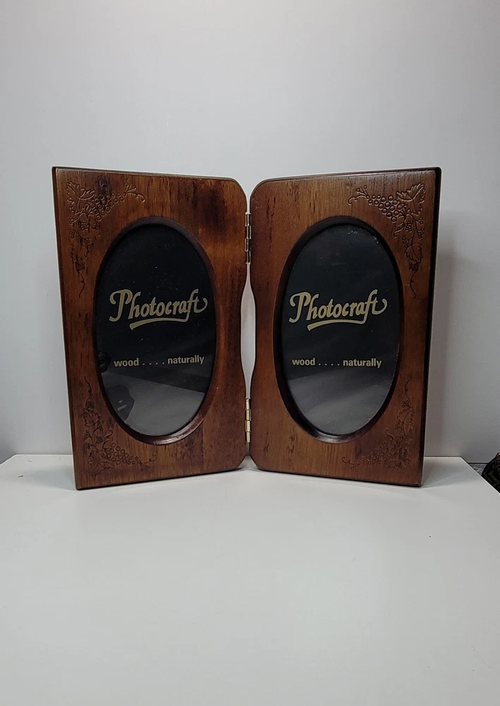 Photo Insertion Type: Rear-Loading Brand: PHOTOCRAFT Country/Region of Manufacture: Unknown Item Length: 11 in Style: Rustic/Primitive Glass Type: Clear Glass Color: Brown Type: Photo Frame Features: hinged Theme: Americana Time Period Manufactured: 1980-1989 Photo Capacity: 2 Suitable for Photo Size: 3.5 x 5 in Mounting: Free Standing Department: Adults Occasion: All Occasions Pattern: Structured Era: Late 20th Century (1970-1999) Material: Wood Shape: Rectangle Item Height: 9 in Item Width: 1/2"