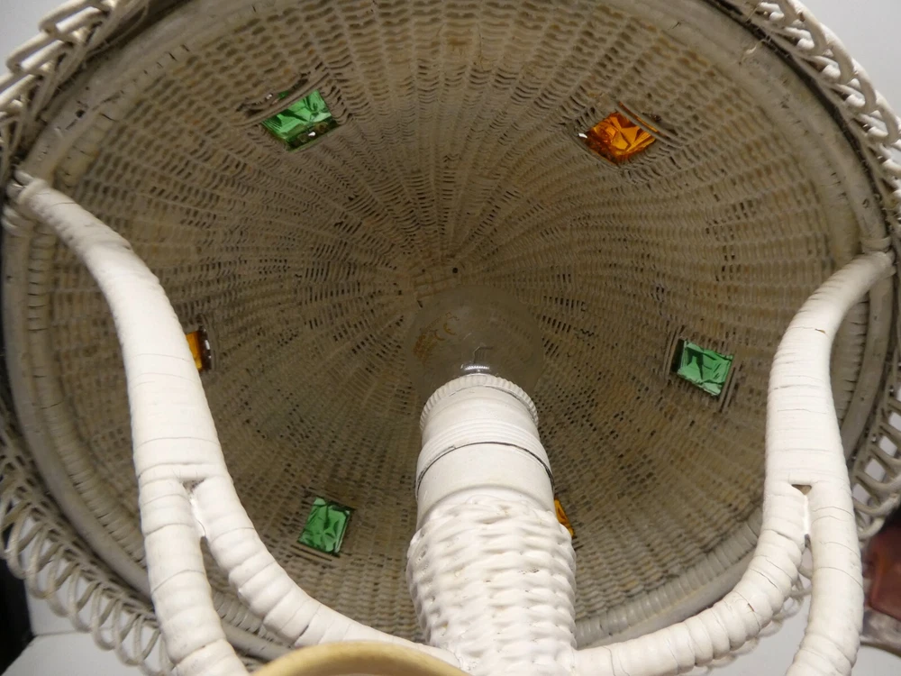 VINTAGE DANISH ROBERT WENGLER 7 AMAGERTORV WOVEN CANE RATTAN WICKER LIGHT LAMP 51 CM HIGH 31 CM DIAMETER GOOD CONDITION INSET ACRYLIC COLOUR PANELS IN SHADE MAKERS LABEL TO BASE INTERESTING DESIGNER LAMP SEE PHOTOS FOR BEST GUIDE TO CONDITION I AM LISTING SOME OTHER ESTATE PIECES I can combine for postage. CHECK MY OTHER LISTINGS FOR MORE