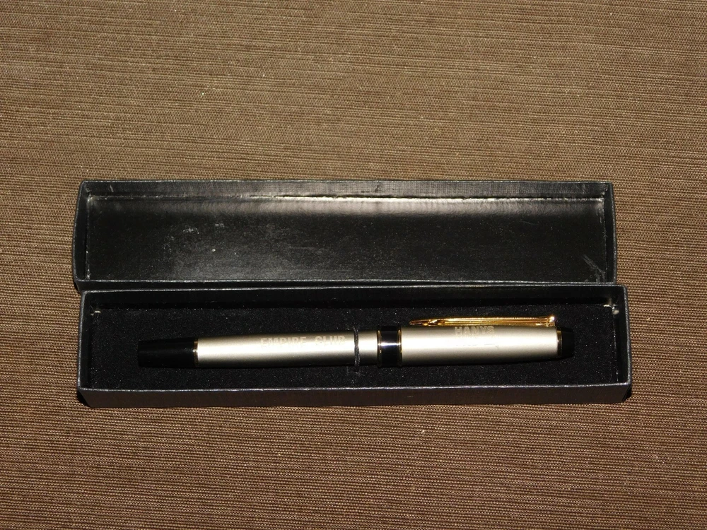 YOU ARE BIDDING ON...... VINTAGE DESK EMPIRE CLUB HANYS PAC PEN in BOX NEW ... ..WRITES GOOD..... ... .PLEASE VIEW PHOTOS FOR CONDITION.***PLEASE E-MAIL IF YOU HAVE A QUESTION OR WANT AN ADDITIONAL PICTURE....PLEASE VISIT MY EBAY STORE FOR ADDITIONAL VINTAGE ITEMS..THANK YOU**9TBX0691-XXXX