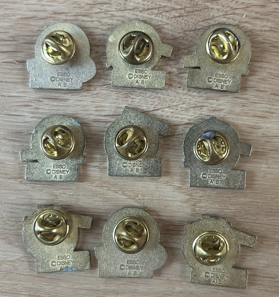 VINTAGE EURO DISNEY PIN BADGES x 9 - ESSO - 1990