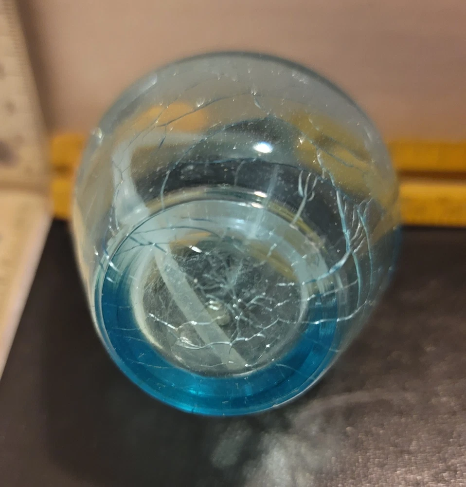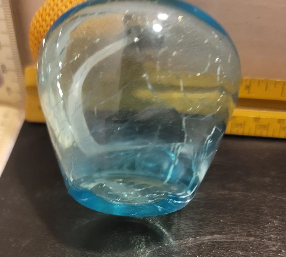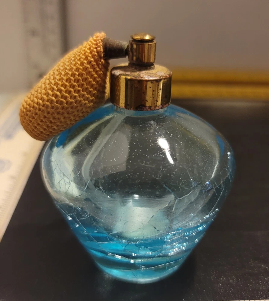 The vintage 3 1/2x2 1/2 Irice crackle glass perfume bottle is a decorative collectible featuring a stylish design. It is a classic bottle type designed for holding perfume, adding a touch of elegance to any vanity or perfume collection. The brand Irice is known for producing high-quality perfume bottles, making this piece a desirable item for collectors and those who appreciate decorative glass/crystal items.