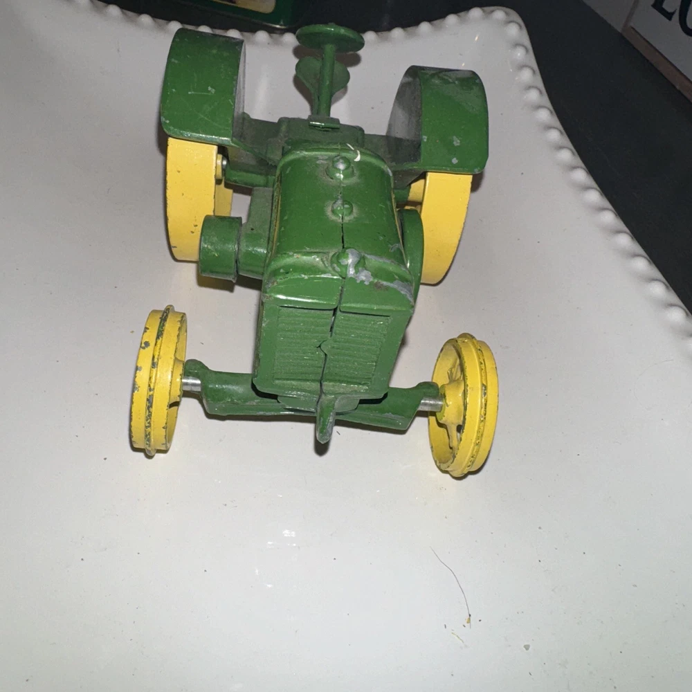 This vintage John Deere Model D tractor is a must-have for any collector or fan of antique farm equipment. Measuring 6 1/2" x 3 3/4" x 3", this 1:32 scale diecast model features moving parts and a stunning green color that accurately represents the iconic John Deere brand. With its special and limited edition features, this advertising specimen is perfect for boys and girls of all ages, from 5 years and up. Whether you're adding it to your collection or buying it as a gift, this John Deere Model D tractor will make a great addition to any collection.