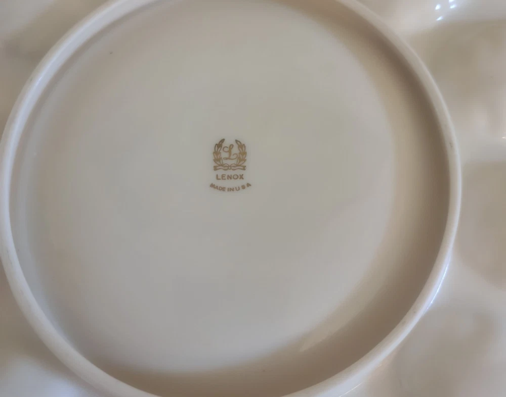 Beautiful 11" diameter bone china plate; made in the USA. Pretty gold edging with very slight wear in center otherwise in great vintage condition, no chips, cracks, crazing or stains. Let me know if you have any questions, thank you!