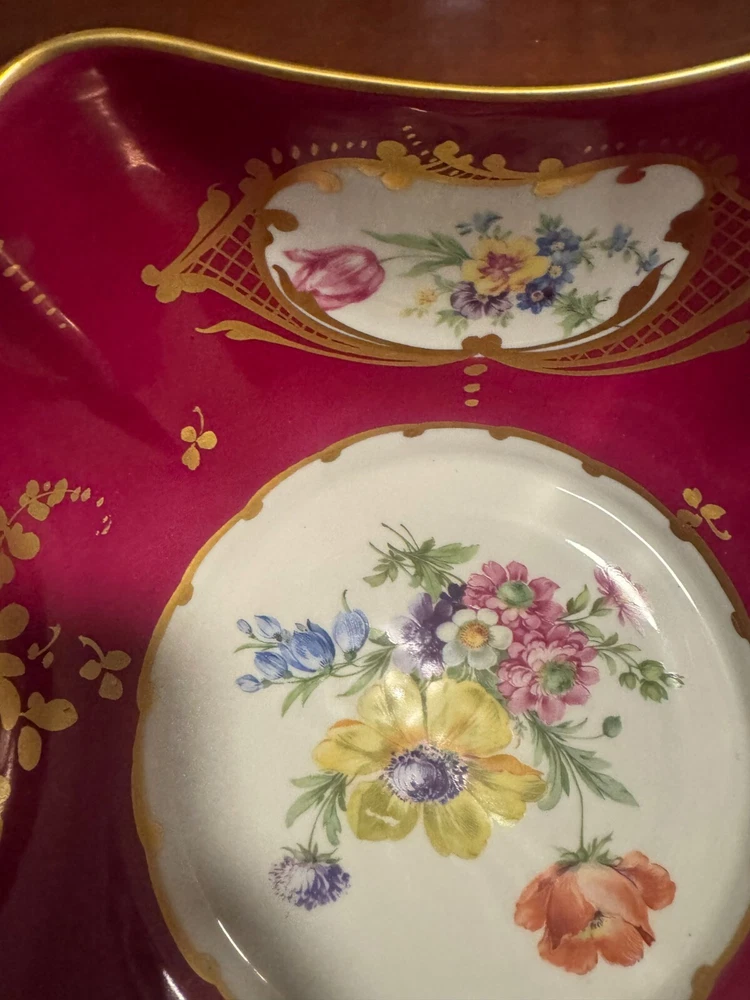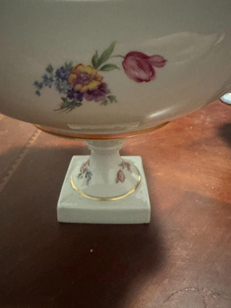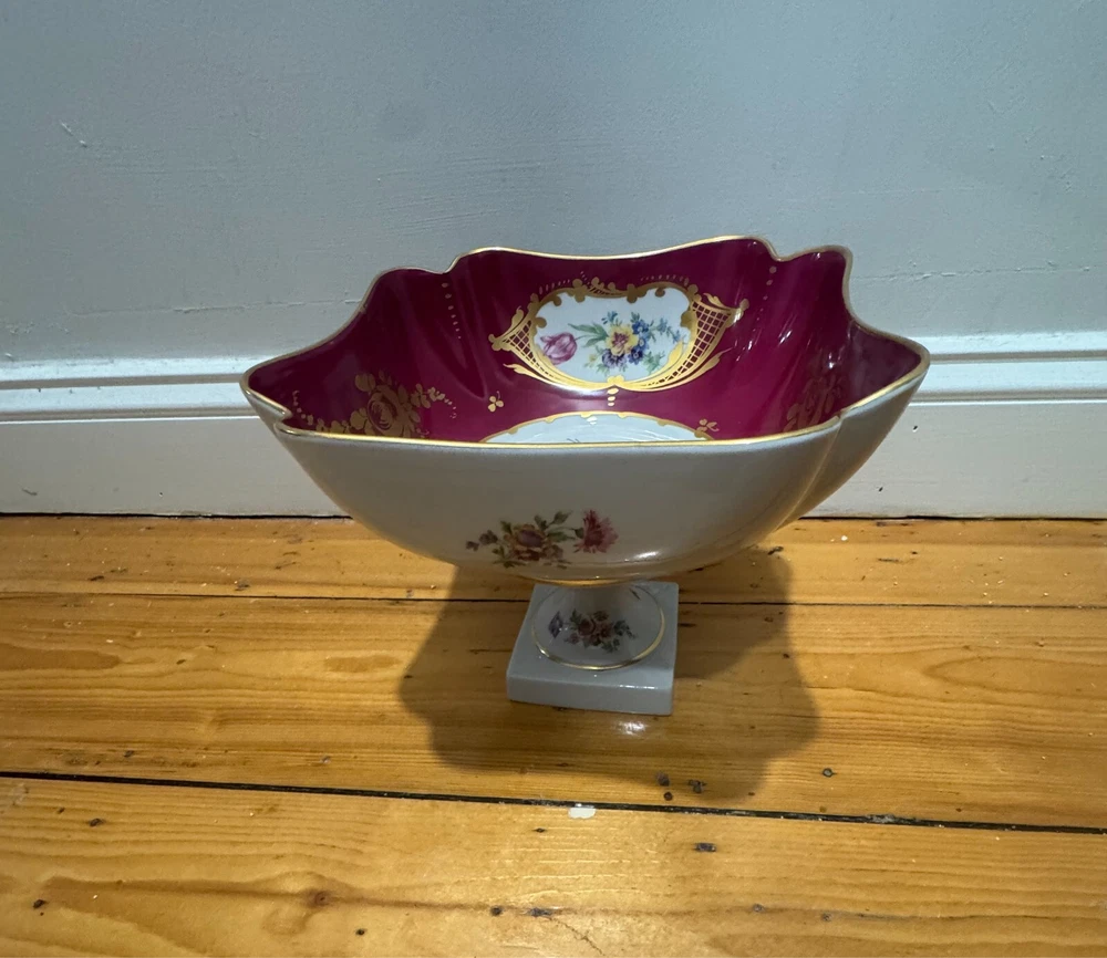 Elevate your home decor with the vintage charm of this Limoges porcelain centerpiece bowl. very minor blemish in the gold rim (pictured)