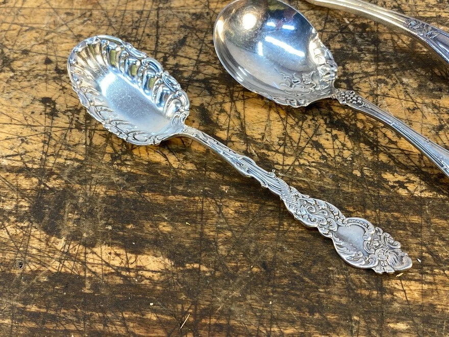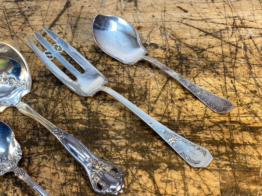 VINTAGE LOT of 5 HOLMES and EDWARDS XIV and ROGERS BROS SERVING FORK and SPOONS F THE ITEMS WE SELL ARE "AS FOUND". I DO NOT CLEAN NOR ATTEMPT TO RESTORE ANY OF THE PIECES. MANY BUYERS WANT THE ITEMS THEY PURCHASE TO BE IN ORIGINAL CONDITION. I TRY TO RESPECT THAT. WE DO OUR BEST TO PROVIDE DETAILED PHOTOS AND ACCURATE DESCRIPTIONS OF ALL ITEMS LISTED FOR SALE. VINTAGE PIECES ARE NOT PERFECT AND SOMETIMES HAVE IMPERFECTIONS SUCH AS TARNISHING, WEAR TO LUSTER, MINOR SCUFFING OR SCRATCHING AND SLIGHT OXIDATION. AS WITH ALL PRE-OWNED ITEMS SOME SIGNS OF WEAR SHOULD BE EXPECTED. PLEASE LOOK CAREFULLY AT ALL PICTURES AS THIS IS THE BEST REPRESENTATION OF THE CONDITION OF MY ITEMS PHOTOGRAPHS PROVIDE THE BEST AND MOST ACCURATE DESCRIPTION OF THE ITEM AND SUPERCEDES ANY WRITTEN DESCRIPTION. LOOK AT ALL PICTURES CAREFULLY. ANY ADDITIONAL INFORMATION CONCERNING THE TRUE AGE, ORIGIN, OR IDENTIFICATION OF AN ITEM IS GREATLY APPRECIATED AND WILL BE ADDED TO THE LISTING. THIS IS A RARE OPPORTUNITY FOR YOUR USE OR COLLECTIONS. SOMETIMES WE MISS SOMETHING. PLEASE NOTIFY US IF YOU SEE ANY INACCURACY WE WILL ADDRESS THE SITUATION RIGHT AWAY. WE CARE ABOUT OUR CUSTOMERS...MAKING SURE THAT OUR CUSTOMERS FIND EXACTLY WHAT THEY WANT. WE TAKE OUR CLIENT?S FEEDBACK SERIOUSLY AND WILL STRIVE TO ADDRESS THE NEEDS OF ALL CUSTOMERS. HOWEVER, SOMETIMES A PRODUCT FAILS TO MEET EXPECTATIONS. AS A MARKET PLACE PLATFORM WE WILL ADDRESS ANY ISSUES AS SOON AS POSSIBLE. WE ARE ALWAYS READY TO HEAR FROM YOU. THE EBAY ESTIMATED SHIPPING COST SHOWN IS FREQUENTLY INCORRECT. I WILL SHIP THE CHEAPEST and BEST. I CANNOT DETERMINE THAT UNTIL AFTER THE AUCTION. MOST OF THE ITEMS I SELL HAVE RECENTLY BEEN PURCHASED AT AUCTIONS OR ESTATE SALE....THUS I OFTEN AM RELYING ON INFORMATION RECEIVED FROM THE SELLER....SO BID ACCORDINGLY. BUYER CERTIFIES THEY ARE 18YRS OF AGE OR OLDER TO BID, BUY, LEGAL TO OWN AND POSSESS IN YOUR AREA, BUYER CERTIFIES THEY ARE IN COMPLIANCE WITH ALL FEDERAL, STATE, & LOCAL LAWS PERTAINING TO SHIPPING OF THIS ITEM TO YOUR LOCATION, NO GUARANTEE/WARRANTY IS IMPLIED TO THE USE OF THIS ITEM, BUYER ACCEPTS/ASSUMES ALL RESPONSIBILITY/RISKS/LIABILITY IN THE USE OF THIS ITEM ****** IF YOU HAVE ANY PROBLEMS WITH THIS LISTING, SHIPPING COSTS, DESCRIPTIONS, COMMUNICATIONS, ETC. PLEASE CONTACT ME SO THAT I CAN CORRECT THE PROBLEM, CHECK MY FEEDBACK. YOU WILL RECEIVE THE EXACT ITEM PICTURED. I WILL COMBINE MULTIPLE ITEMS WHEN PACKING THEM WHEN POSSIBLE. ITEM WILL SHIP FROM 65804 THANK YOU FOR LOOKING. GOOD LUCK BIDDING.