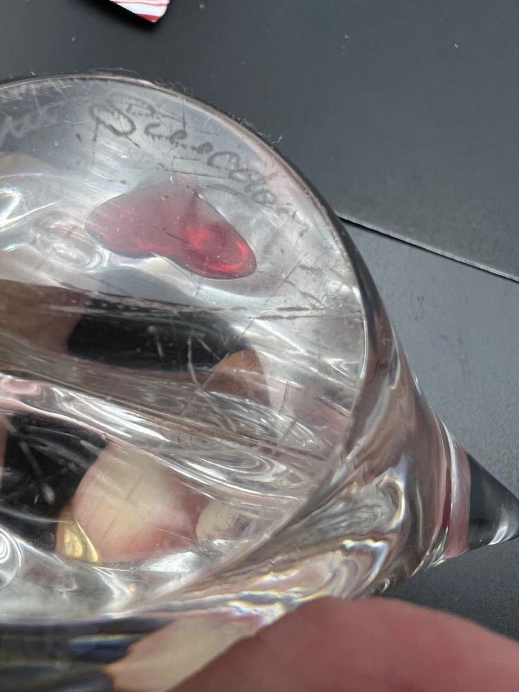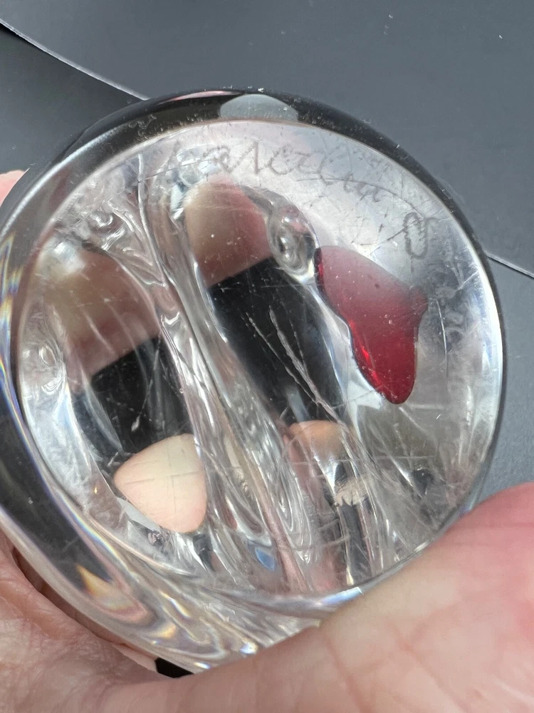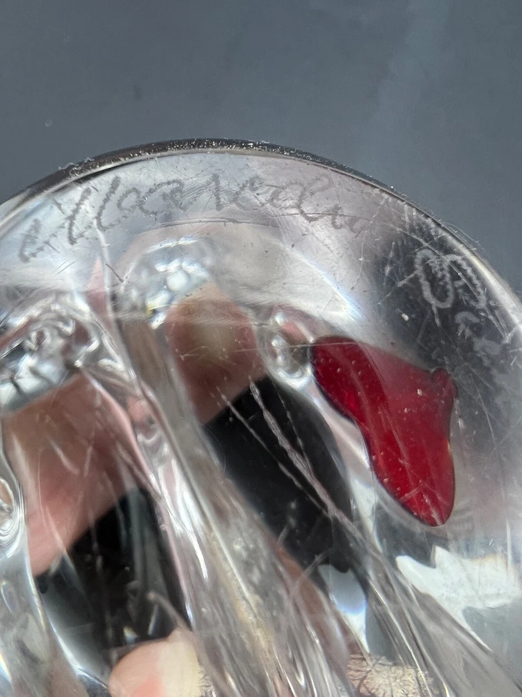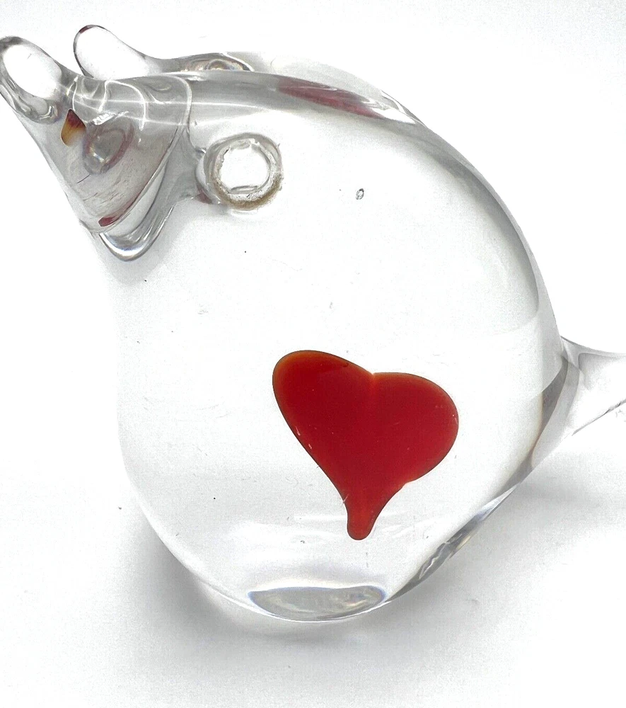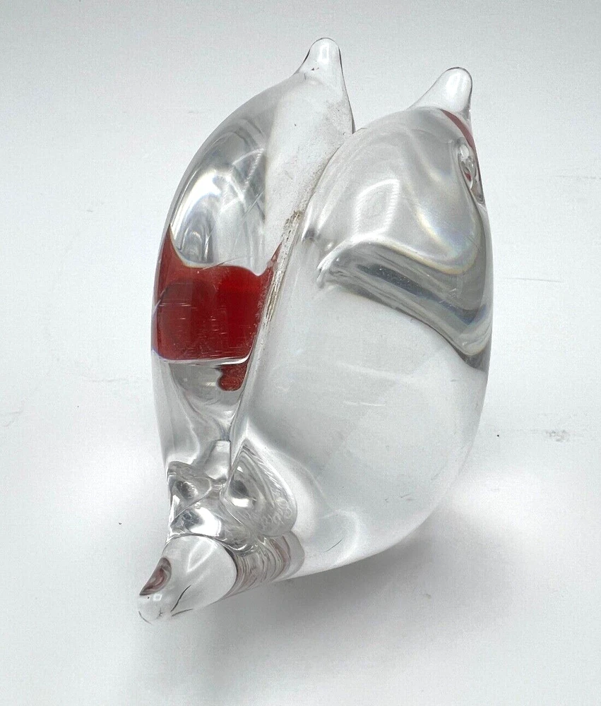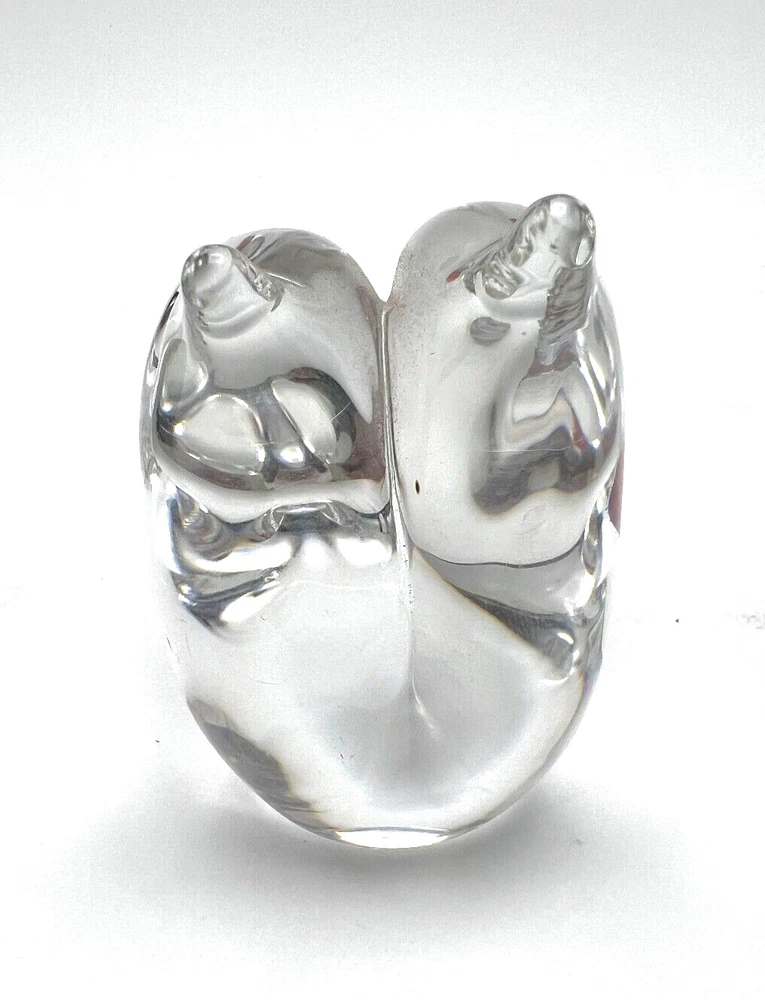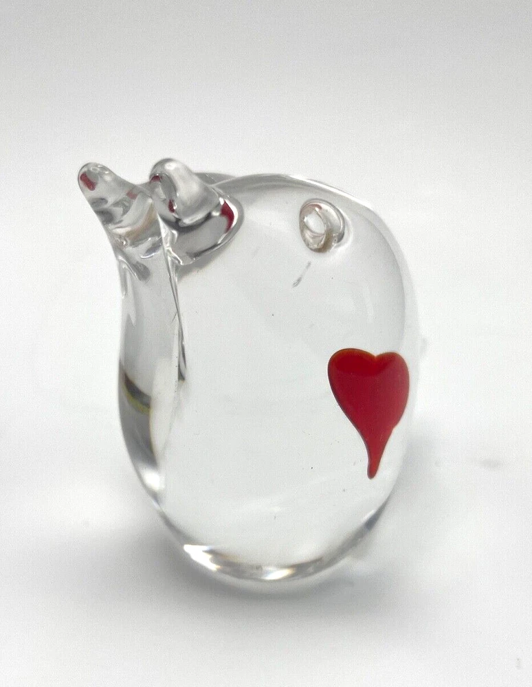 This beautiful figurine from Marcolin is a stunning piece of art glass. When two hearts become one. Hand-blown and signed by the artist, it features two birds sharing one heart in clear glass. The Scandinavian origin and incised backstamp add to the charm of this piece, which would make a wonderful addition to any collection. The production style and technique of this piece is truly impressive, with every detail of the birds and heart carefully crafted. The colors, though limited to clear glass, create a sense of peace and harmony. Add this unique piece to your collection today! The size is about 4 x 4 inches I will pack with care and get it to you ASAP Thanks for looking !