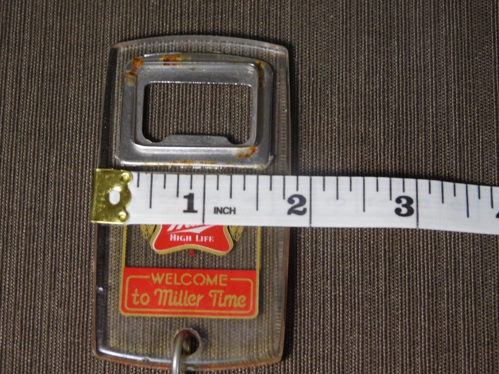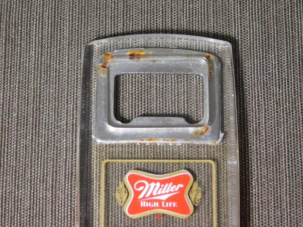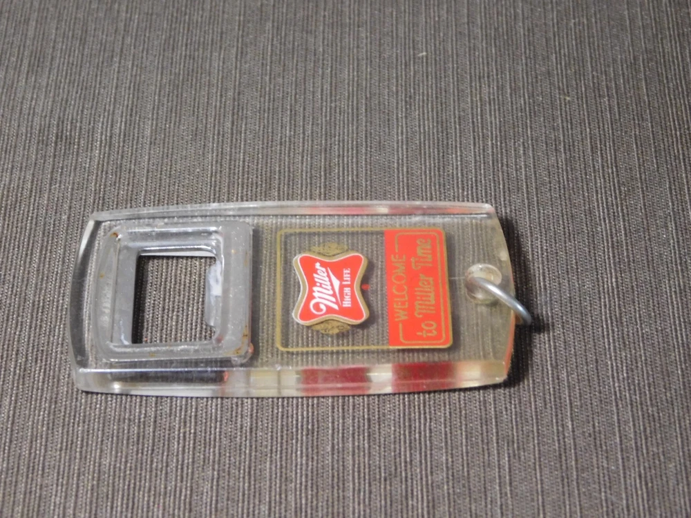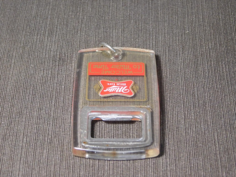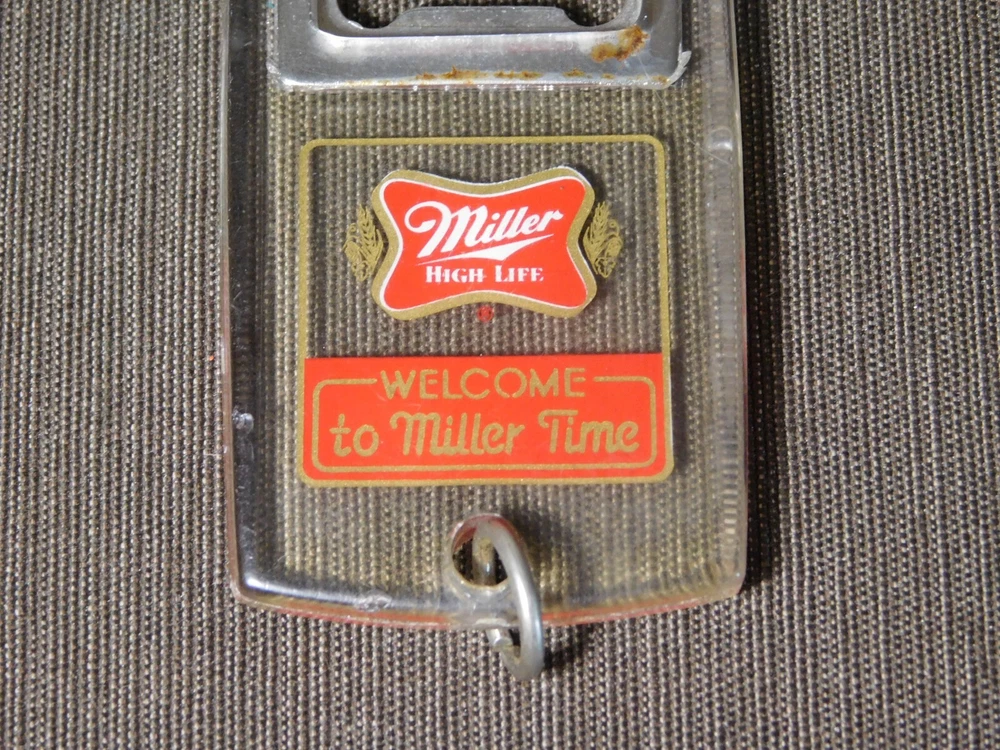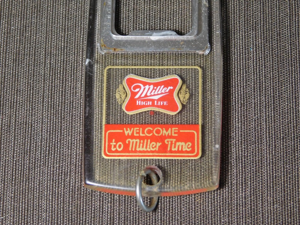 YOU ARE BIDDING ON..... VINTAGE MILLER HIGH LIFE KEYCHAIN BEER BOTTLE OPENER .SHOWS USAGE/AGE WEAR HAS SCRATCHES/FEW NICKS/RUST SPOTS/AGE DISCOLORATION.. ... PLEASE VIEW PHOTOS FOR CONDITION.***PLEASE E-MAIL IF YOU HAVE A QUESTION OR WANT AN ADDITIONAL PICTURE....PLEASE VISIT MY EBAY STORE FOR ADDITIONAL VINTAGE ITEMS..THANK YOU***11W-BX4848-prbg4949