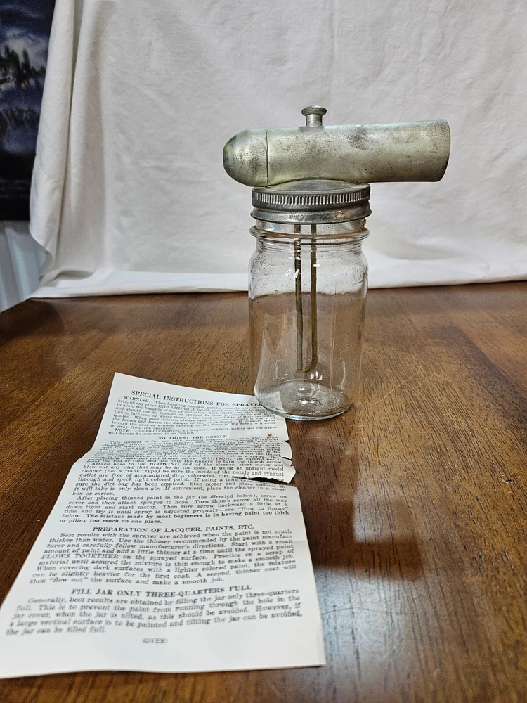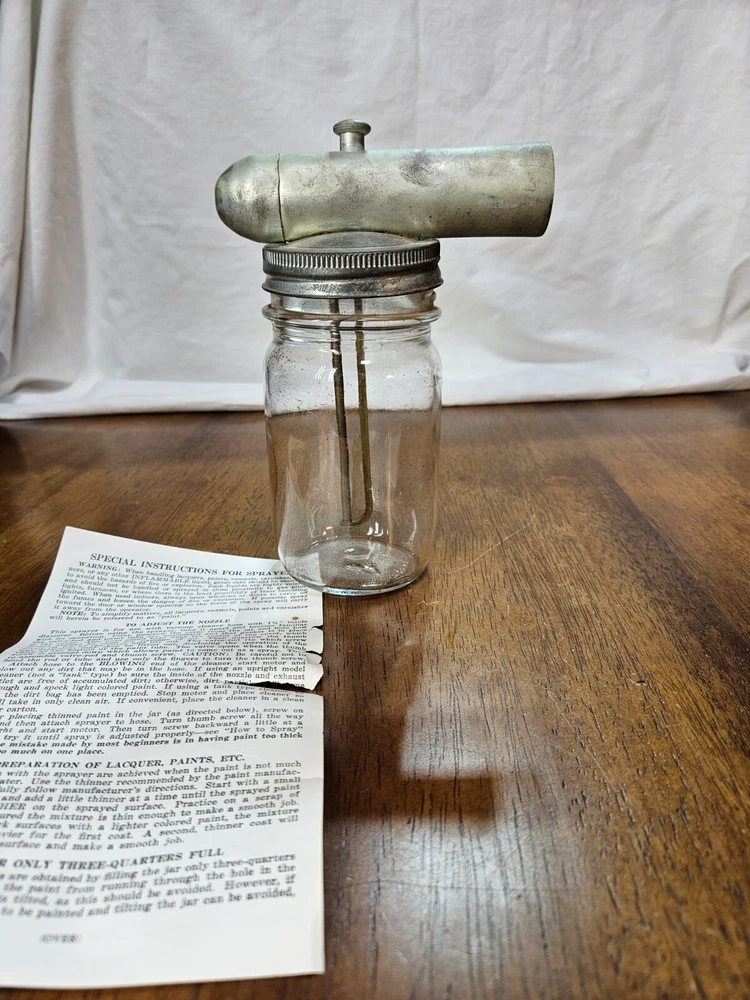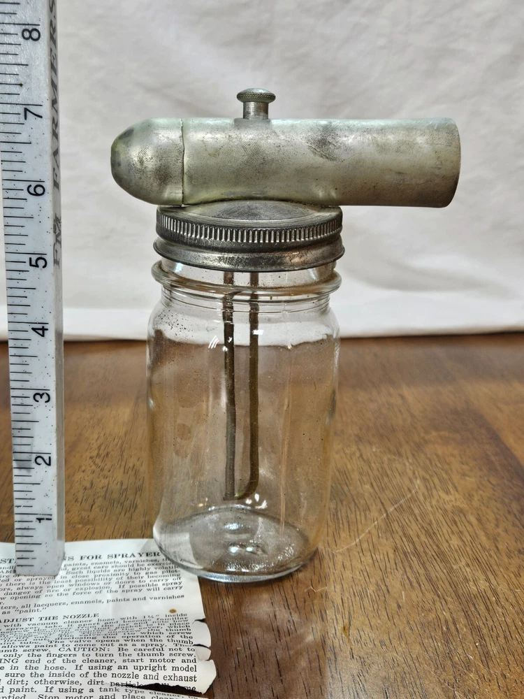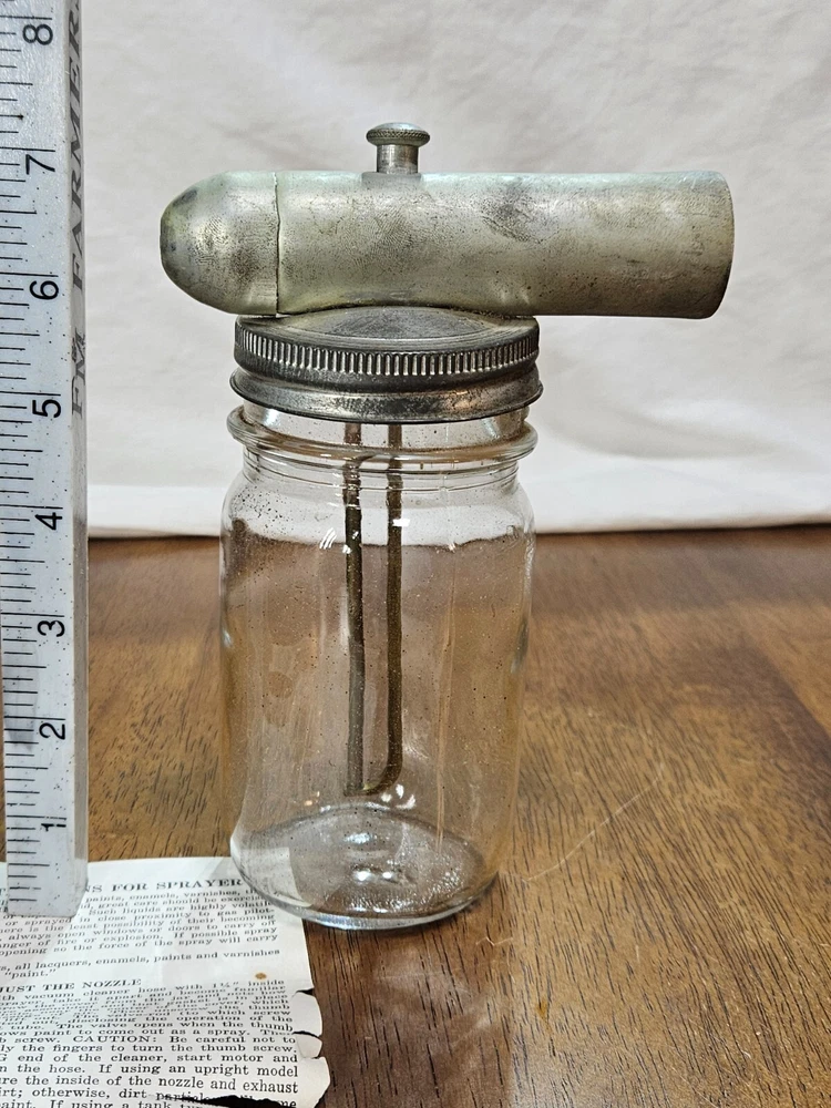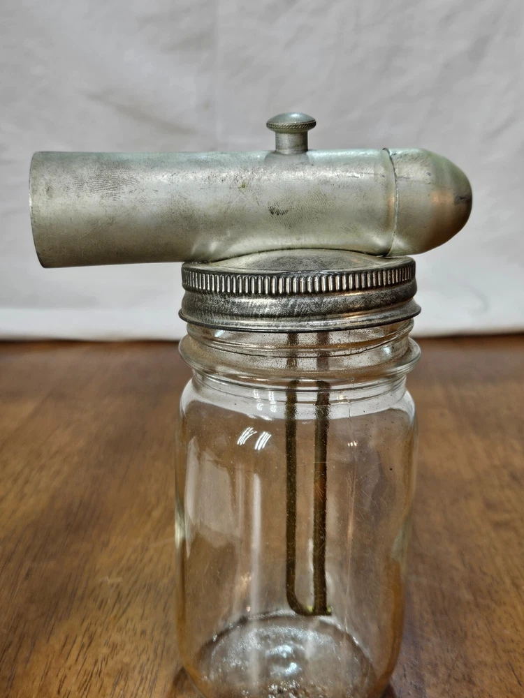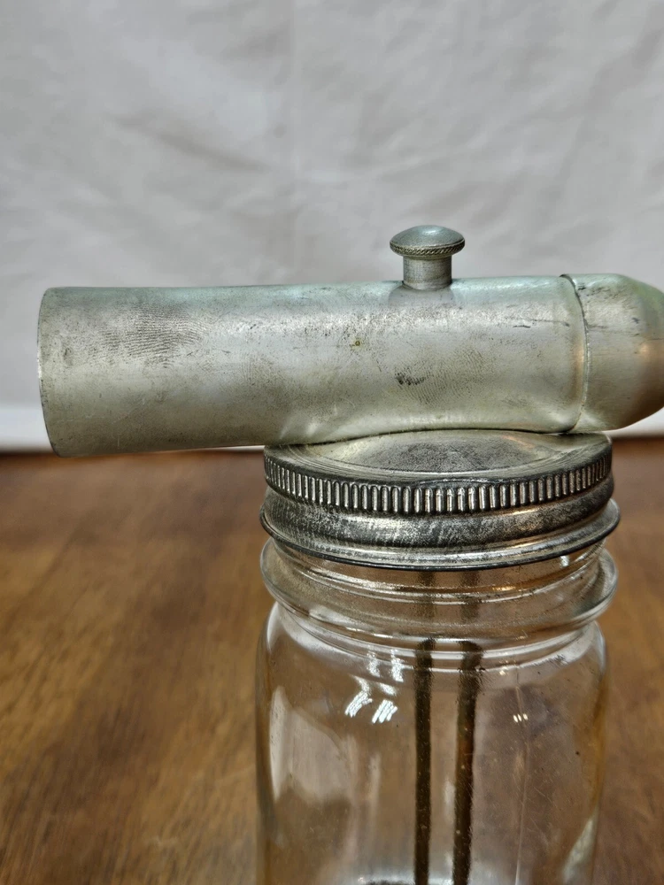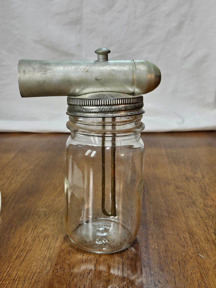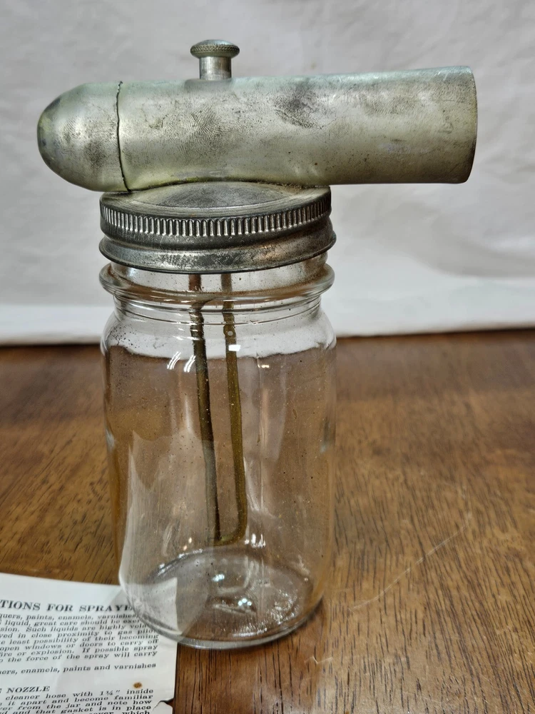 VINTAGE Metal Glass Jar Stain Insecticide Paint Sprayer Bottle with Instructions