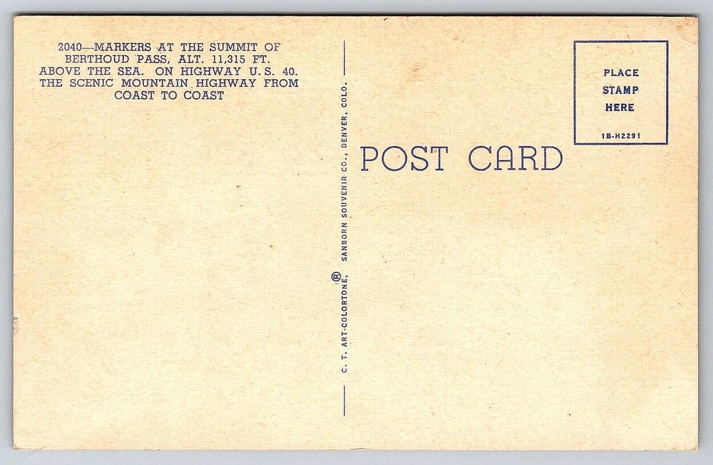 VINTAGE OLD ANTIQUE POSTCARD BERTHOUD PASS SUMMIT MOUNTAIN HIGHWAY COLORADO USA