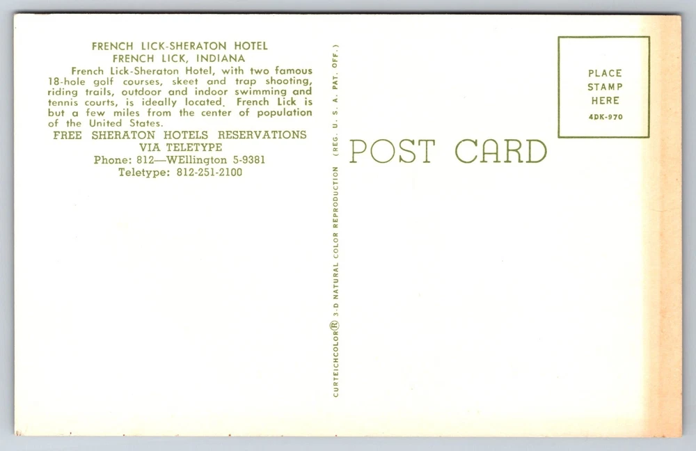 VINTAGE OLD ANTIQUE POSTCARD FRENCH LICK SHERATON HOTEL FRENCH LICK INDIANA USA