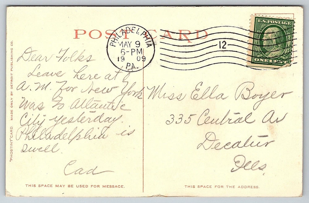 Postage Condition: Posted Country/Region of Manufacture: United States Brand/Publisher: Detroit Publishing Type: VINTAGE OLD ANTIQUE POSTCARD LIBERTY BELL INDEPENDENCE HALL Posted: Yes Unit of Sale: Single Unit Features: Divided Back, Stamp, Stamped, White Border, Original Genuine Antique Vintage Postcard Location: Philadelphia, Pennsylvania USA Antique: Yes Vintage: Yes Finish: Matte Original/Licensed Reprint: Original Year Manufactured: 1909 Time Period Manufactured: 1900-1919 Signed: Yes Country: United States Subject: Cities & Towns Continent: North America Theme: Architecture, Cities & Towns, Community Life, Famous Places, Historical Figures, Social History, Postcard, Antique, Vintage, Ephemera, Collectible, Memorabilia, Old, Retro, History, Card, Mail, Paper Size: Standard (5.5 x 3.5 in) Stamp: Yes Featured Person: None UPC: DOES NOT APPLY Era: Divided Back (1907-1915) Character: Postcard Number of Items in Set: 1 Franchise: Postcard Orientation: Horizontal Color: Multicolor Occasion: Postcard Material: Paper gtin13: DOES NOT APPLY Artist: Postcard Seller Notes: “Good Vintage Condition. See Pictures And Description Closely For Details.” Region: Pennsylvania City: Philadelphia Signed By: Sender
