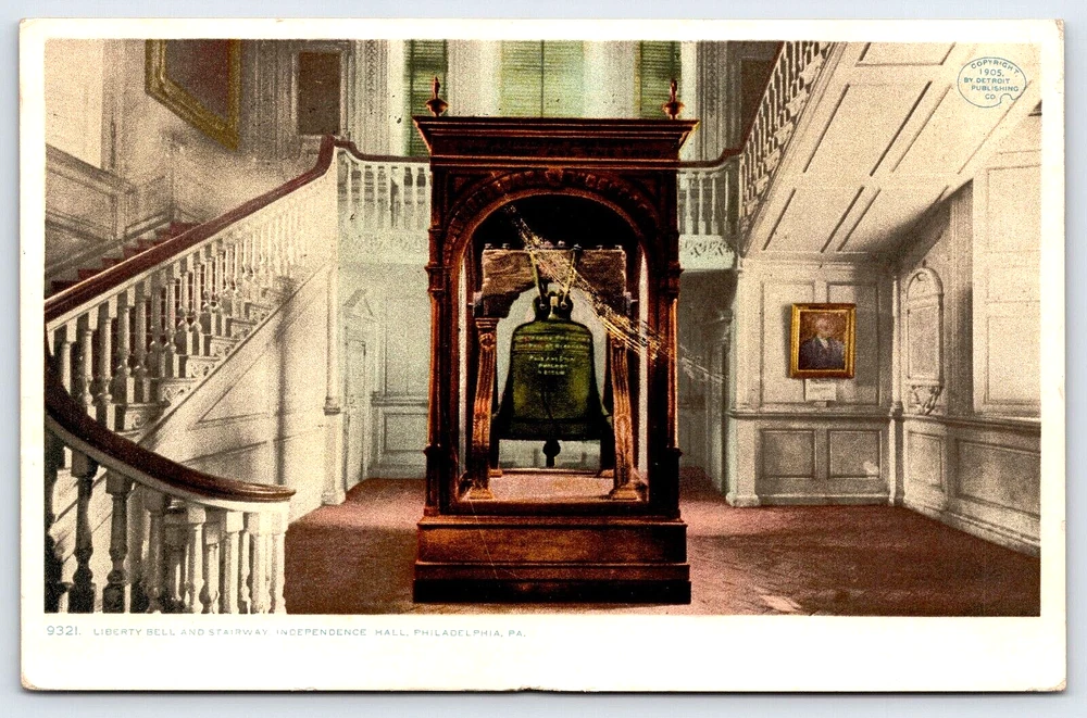 VINTAGE OLD ANTIQUE POSTCARD LIBERTY BELL INDEPENDENCE HALL STAIRS PHILADELPHIA