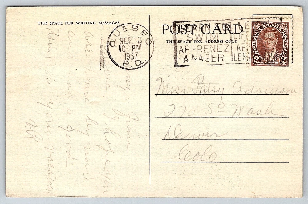 Orientation: Horizontal Antique: Yes Color: Multicolor Year Manufactured: 1937 Finish: Matte Number of Items in Set: 1 Vintage: Yes Country: Canada Seller Notes: “Good Vintage Condition. See Pictures And Description Closely For Details.” Country/Region of Manufacture: Canada Brand/Publisher: Unbranded Occasion: Postcard Featured Person: None Time Period Manufactured: 1930-1939 Region: Quebec Posted: No Material: Paper Type: VINTAGE OLD ANTIQUE POSTCARD Subject: Cities & Towns Artist: Postcard City: Quebec Era: Divided Back (1907-1915) Stamp: No Theme: Cities & Towns, Famous Places, Historical Figures, Landscapes, Nautical, Seasons, Postcard, Antique, Vintage, Ephemera, Collectible, Memorabilia, Old, Retro, History, Card, Mail, Paper Postage Condition: Posted gtin13: DOES NOT APPLY Franchise: Postcard Location: Quebec, Canada Original/Licensed Reprint: Original Continent: North America Signed: Yes Features: Divided Back, Stamp, Stamped, Original Genuine Antique Vintage Postcard Character: Postcard UPC: DOES NOT APPLY Unit of Sale: Single Unit Signed By: Sender Size: Standard (5.5 x 3.5 in)