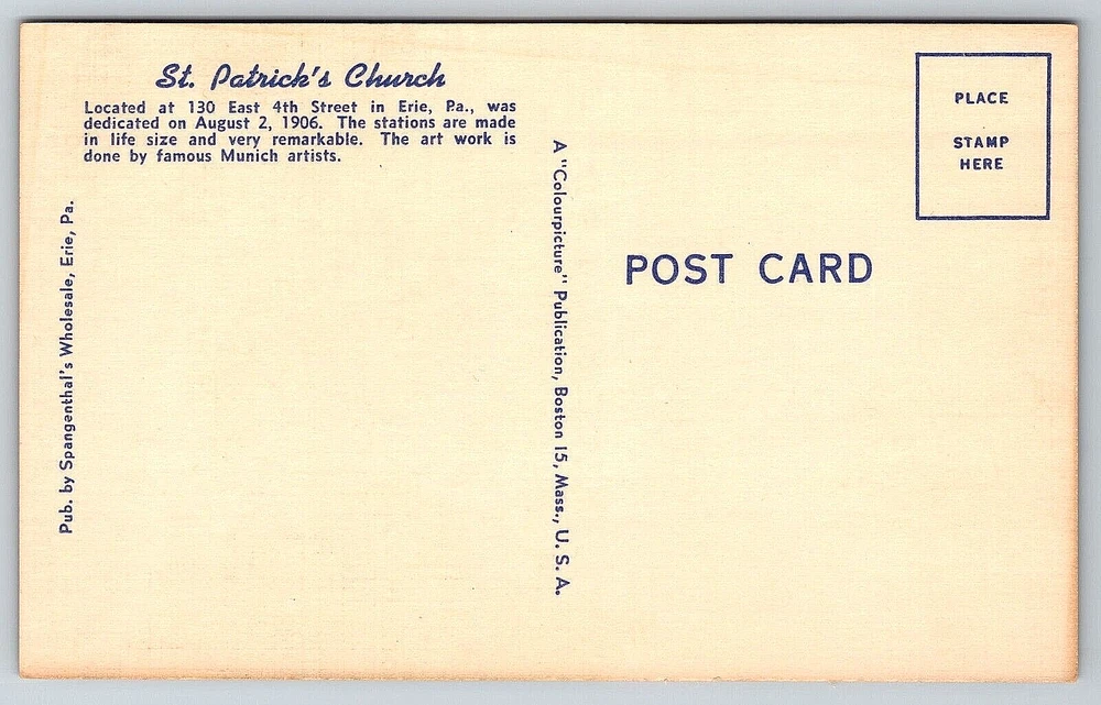 VINTAGE OLD ANTIQUE POSTCARD ST. PATRICK'S CHURCH CAR BUILDING ERIE PENNSYLVANIA