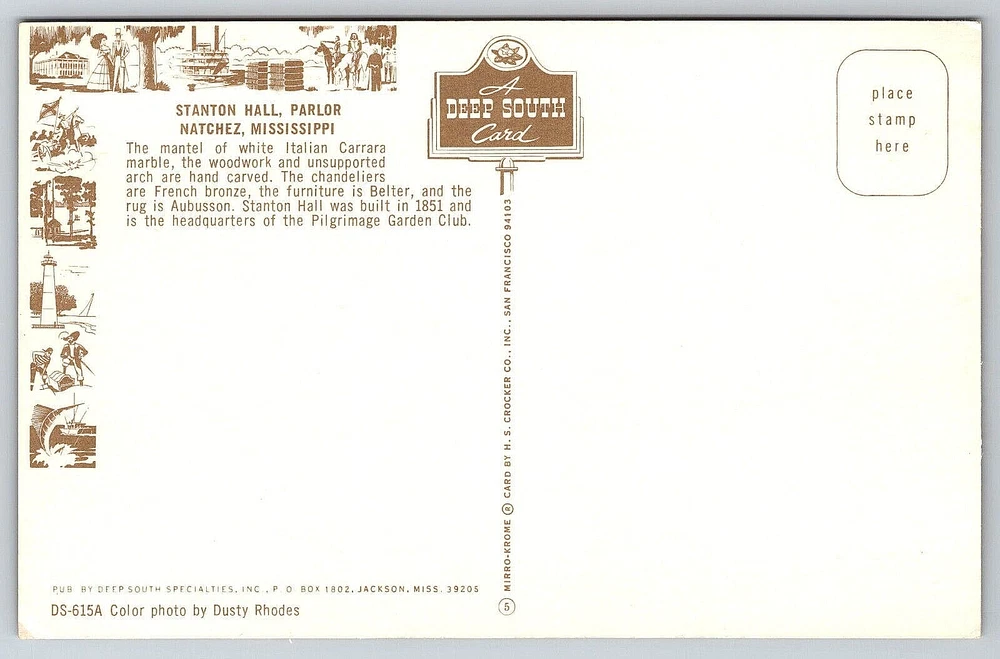 VINTAGE OLD ANTIQUE POSTCARD STANTON HALL HOUSE PARLOR ROOM NATCHEZ MISSISSIPPI