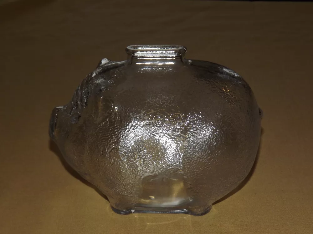 YOU ARE BIDDING ON...... VINTAGE OLD GLASS COIN PIGGY BANK...... .........MEASURES APPROX 6 1/4" LONG..4 3/4" HIGH...SHOWS MINOR HANDLING/AGE WEAR..NO CHIPS OR CRACKS.....PLEASE VIEW PHOTOS FOR CONDITION.***PLEASE E-MAIL IF YOU HAVE A QUESTION OR WANT AN ADDITIONAL PICTURE....PLEASE VISIT MY EBAY STORE FOR ADDITIONAL VINTAGE ITEMS..THANK YOU*** BX7744-40-6564