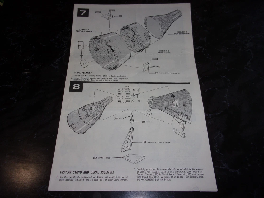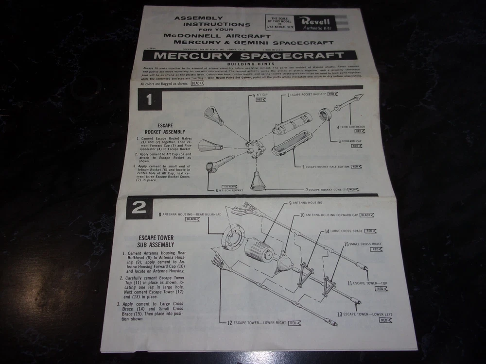Attn: We've been selling under the ebay id: PKBEASLEY for nearly 25 years. Check our feedback and feel confident that you will receive professional attn. & courtesy regarding all of your concerns. All items packed professionally and shipped quickly as 100 % satisfaction is our goal. COMBINED SHIPPING AVAILABLE EACH ADDITIONAL SIMILAR ITEM SHIPS FOR .50ct. PER ITEM VINTAGE ORIGINAL 1964 REVELL MERCURY SPACECRAFT MODEL KIT INSTUCTION SHEET~ EX SEE PHOTO/S FOR MORE DETAILS AS THE PHOTOS ARE PART OF THE DESCRIPTION. WE DO NOT USE STOCK PHOTOS See Picture(s) for more details PLEASE SEE PHOTO AND ASK ALL QUESTIONS BEFORE BIDDING. BID WITH CONFIDENCE. I'VE BEEN SELLING ON EBAY FOR OVER 20+ YEARS. LOW STARTING BID PRICES- NEVER A RESERVE - EVERYTHING PRICED TO SELL ! ***** COMBINED SHIPPING AVAILABLE ***** If shipped within the USA or to Ebay Global Shipping location I do not accept bids from users who have their feedback hidden as private. Your bid will not be honored. NOTE: POSITIVE FEEDBACK LEFT FOR ME WILL BE RECIPROCATED