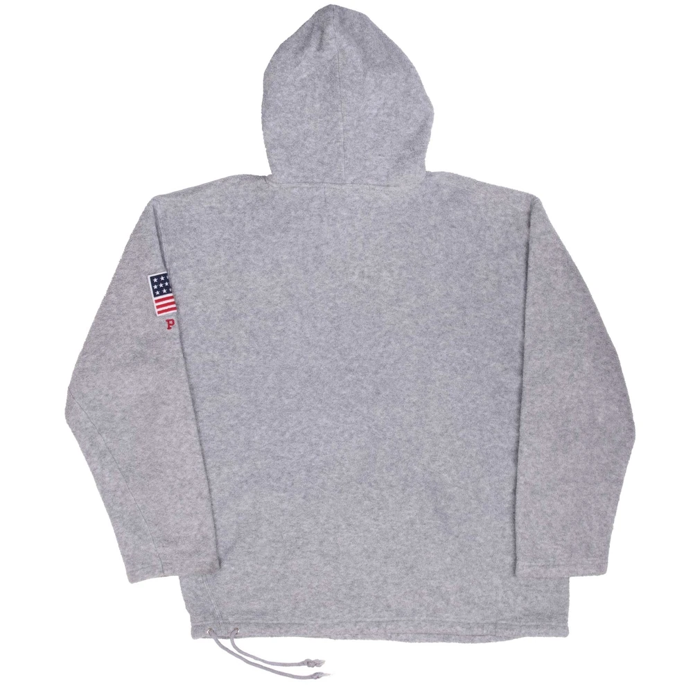 Vintage Polo Sport Ralph Lauren Usa Fleece Hoodie Sweatshirt 1990S Large Material: 95% Cotton / 5% Polyester Label: Polo Sport Ralph Lauren Made In: Hong Kong Size: Large A: Armpit To Armpit : 25.5in B: Neck to Bottom : 26.5in C : Sleeve Length : 22.5in