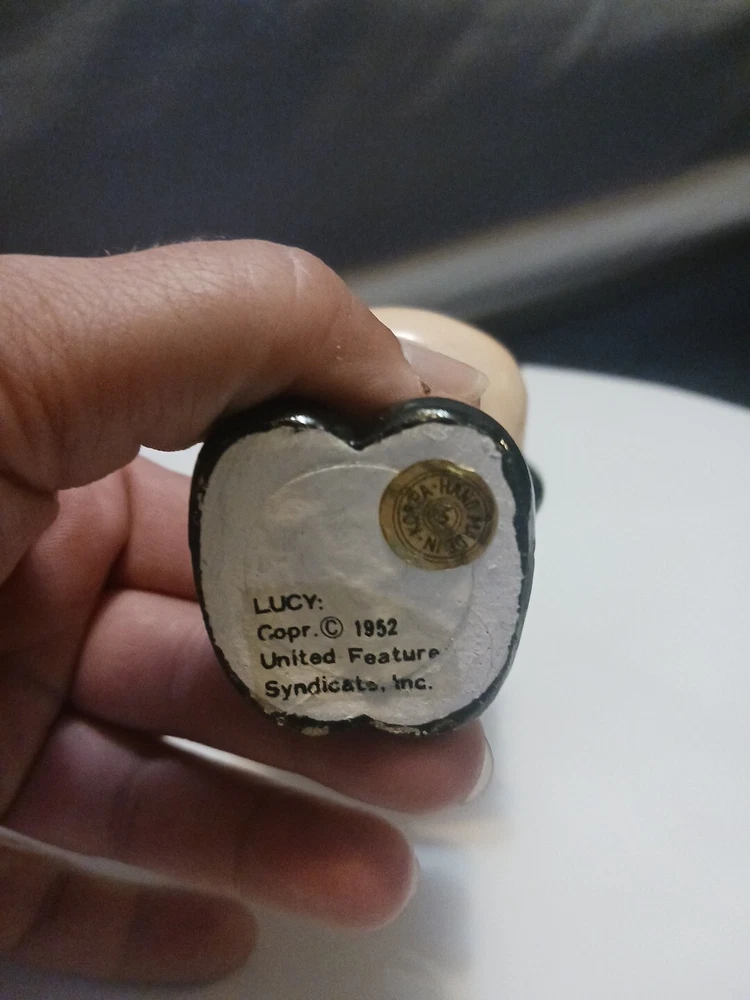 This vintage Peanuts hand-painted ceramic bobbling bobble head of Lucy is a must-have for any fan of the classic cartoon and TV character. Made in Korea, Republic of, this collectible piece is crafted from high-quality clay and features a colorful, multicolor design that will brighten up any room. With its intricate details and charming design, this bobble head is the perfect addition to any Peanuts or animation merchandise collection. Whether you're a longtime fan or just discovering the world of Peanuts, this unique piece is sure to delight and bring joy to all ages.