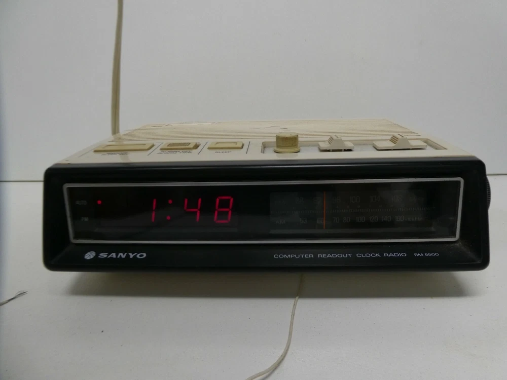 VINTAGE SANYO COMPUTER READ OUT CLOCK RADIO MID CENTURY RADIO ALARM DIGITAL CLOCK GOOD WORKING ORDER CASE IN GOOD CONDITION CONSISTENT WITH AGE AND USE SEE PHOTOS FOR GUIDE TO CONDITION I AM LISTING SOME OTHER PIECES I can combine for postage. CHECK MY OTHER LISTINGS FOR MORE