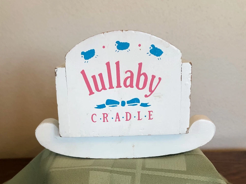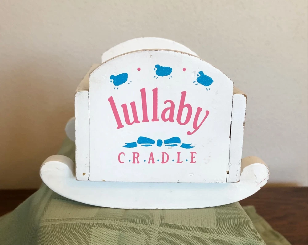 VINTAGE SMALL WHITE WOOD LULLABY CRADLE DOLL