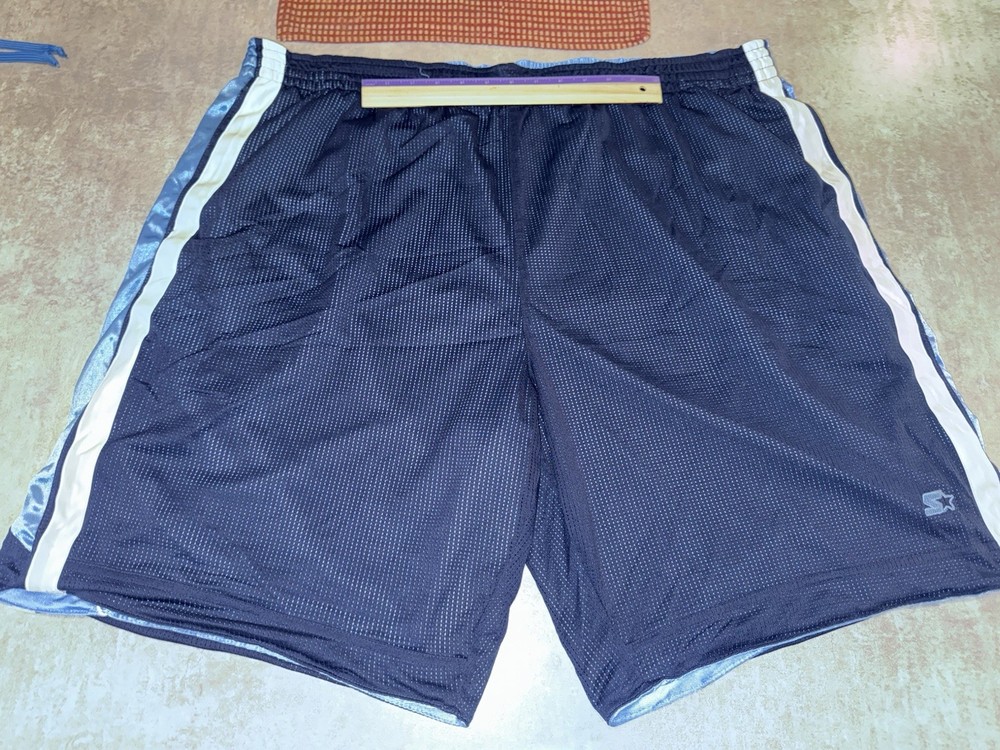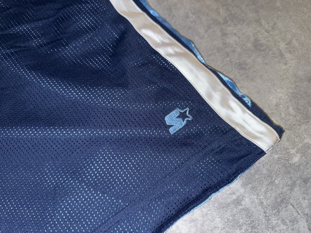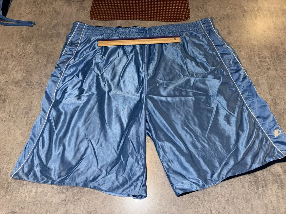 Nice very clean vintage pair of starter basketball athletic shorts reversible Love them North Carolina colors There’s no tag but everything that we’re listening has been 2 to 3 XL. Other ones like this I’ll be listing are marked three XL These are bigger sizes for people that can’t find stuff easily and comfortably