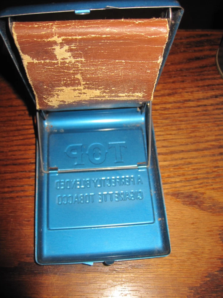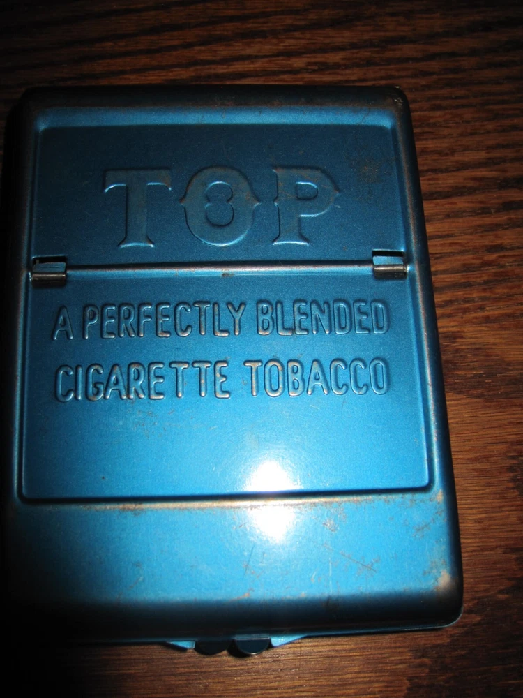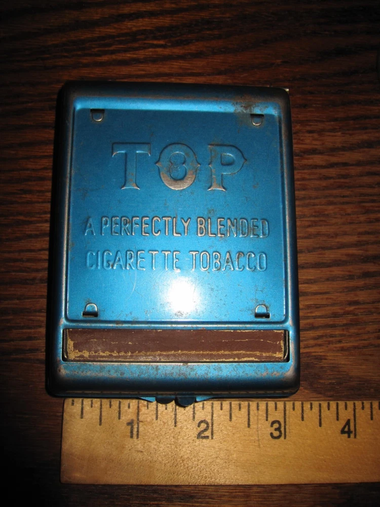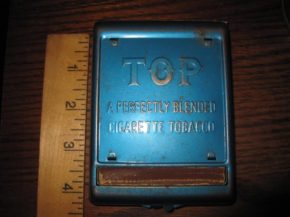 FOR SALE: VINTAGE TOP TOBACCO CIGARETTE ROLLING MACHINE BLUE TIN NOT TESTED - SELLING AS SHOWN SHOWS SOME WEAR - SEE PHOTOS