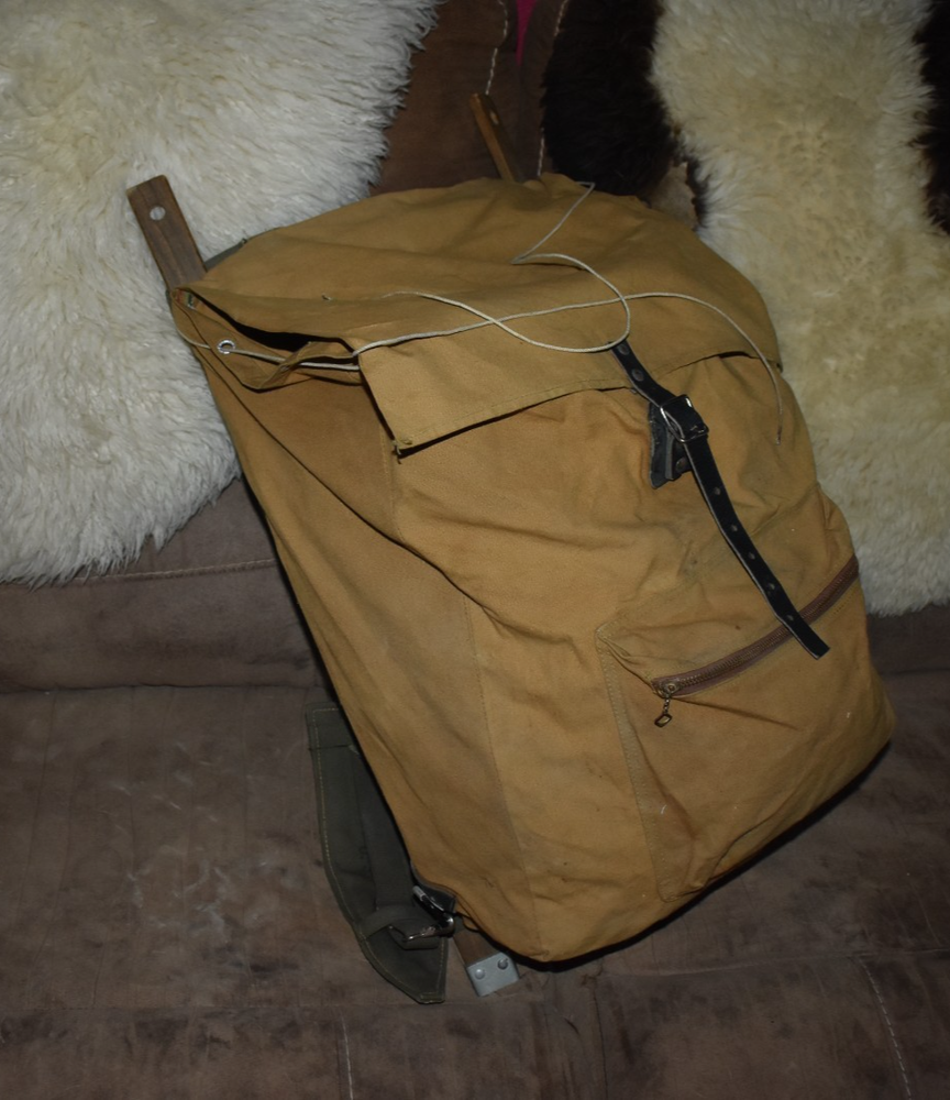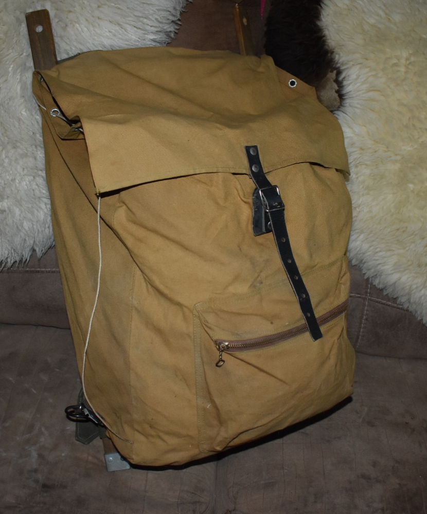 The Vintage Trapper Hiking Wood Frame Packboard Canvas Leather Backpack is a medium-sized, unisex hiking backpack that combines retro charm with practical features. Made from a combination of canvas and leather, this beige backpack includes two pockets for convenient storage and organization. The vintage design adds a touch of nostalgia to outdoor adventures, while the sturdy wood frame ensures durability during rugged hikes. Perfect for those looking for a stylish and functional backpack to accompany them on their next outdoor excursion. Backpack is very nice overall complete and usable overall. Frame is a light wood frame construction and is surprisingly comfortable for age of pack. backpack is midsize but big enough for overnight camping or hunting in my opinion. Backpack is 26'' x 14'' with frame measured. Packed well and shipped fast.