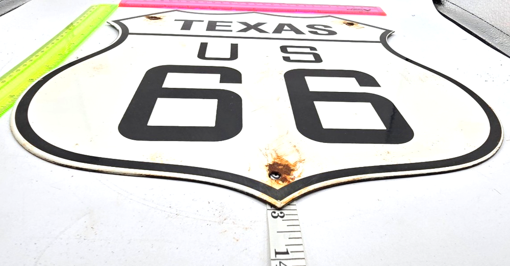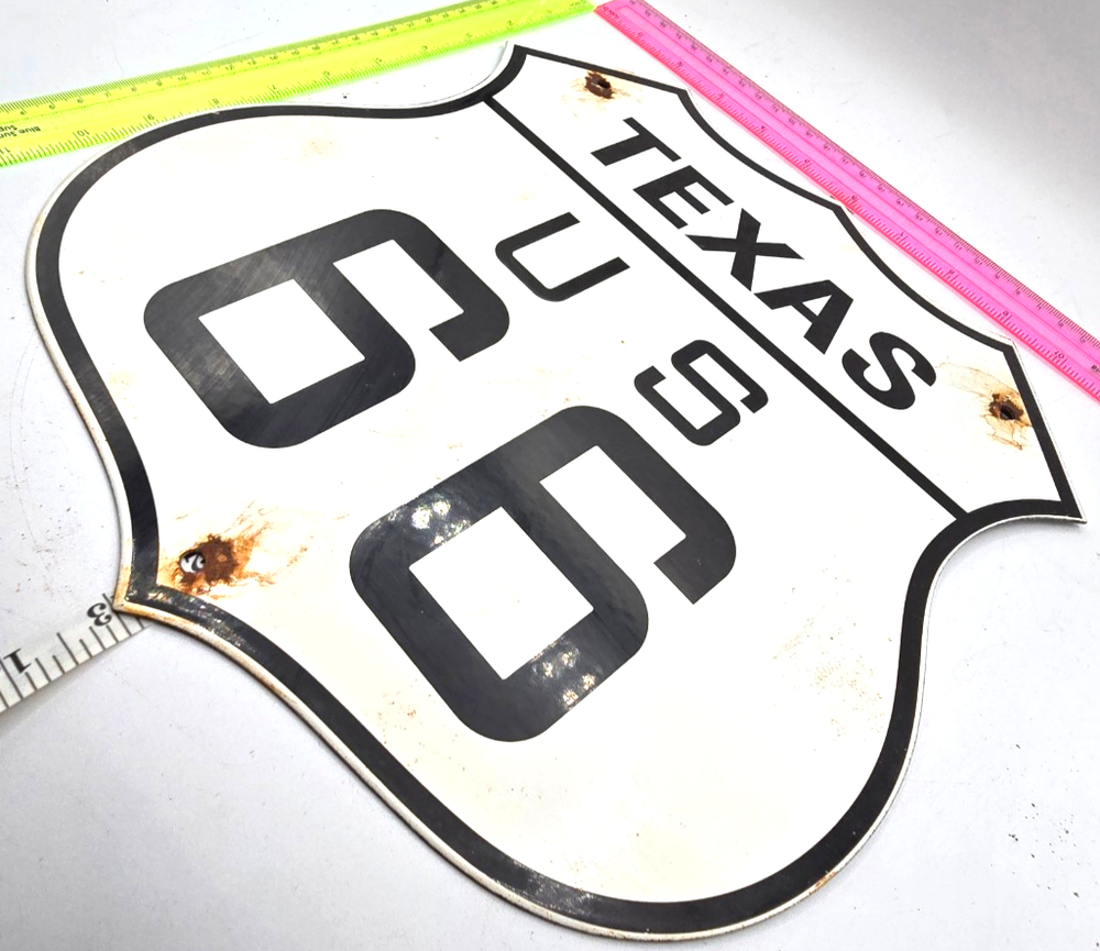 VINTAGE US ROUTE 66 TEXAS PORCELAIN METAL HIGHWAY SIGN GAS OIL ROAD SHIELD