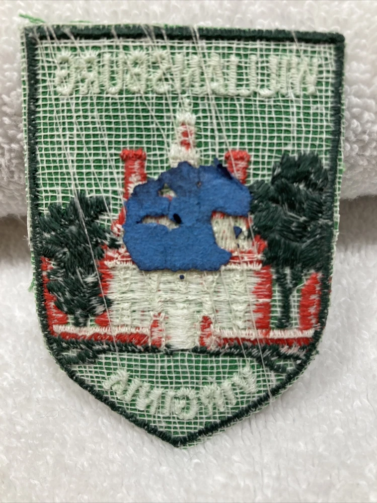 VINTAGE TRAVEL PATCH WILLIAMSBURG VIRGINIA NEVER USED TINY PIECE OF BLUE PAPER STUCK TO BACK 2" x 3"