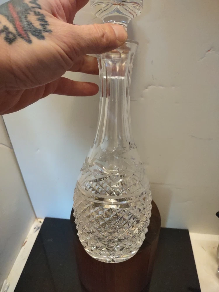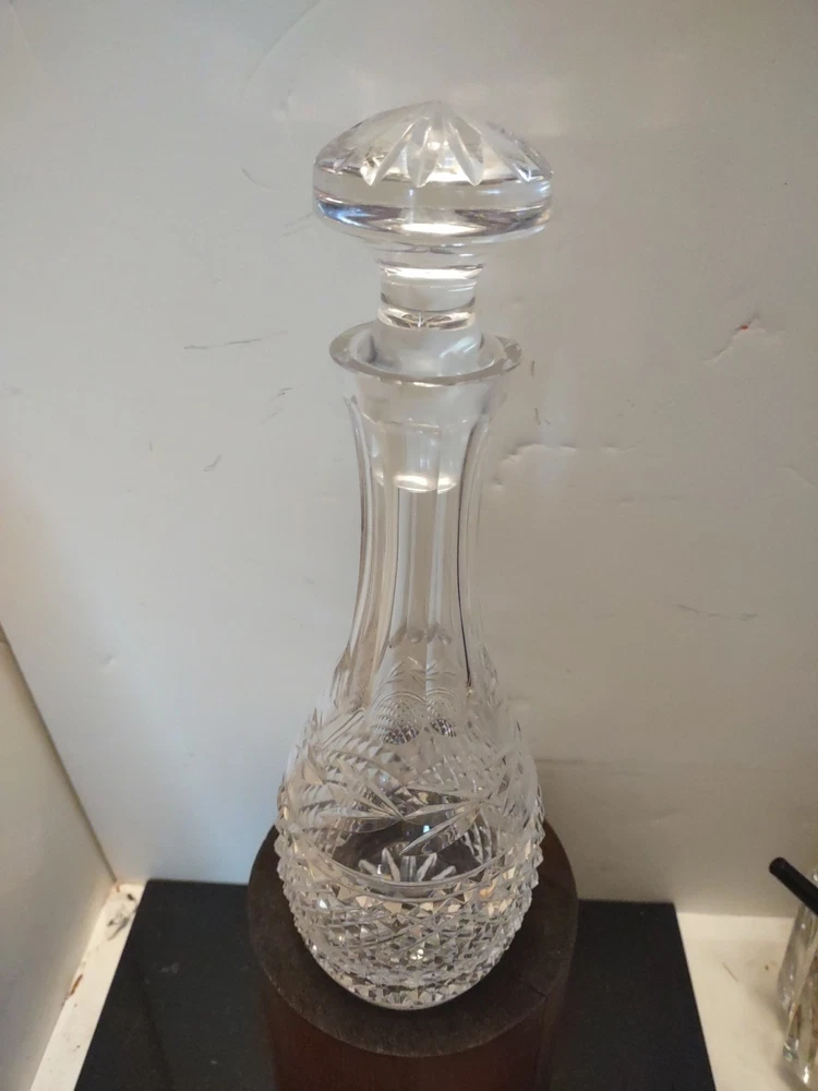This vintage Waterford Crystal Glandore Decanter is a stunning piece to add to your collection. Crafted in Ireland, this clear crystal decanter stands at 11 inches tall and comes with a stopper. The intricate design and beautiful craftsmanship make it a unique and elegant addition to any barware collection. The decanter is made of high-quality crystal and is in excellent condition, ready to be displayed or used for your favorite spirits. Beautiful estate find in perfect condition no cracks or chips perfect for any Waterford Crystal collector could make a great gift Shipped right out USPS ground advantage.