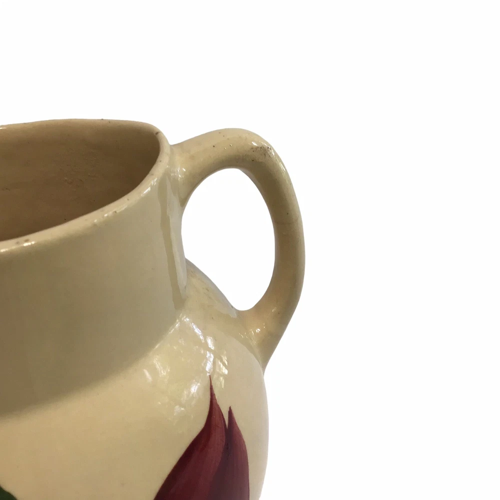 Condition: Pre owned, very good condition, piece does show signs of wear, chip in lip, small scratch on handle, crack tracing at bottom inside of pitcher-tested-does not leak, see photos Size: 6.75" tall, 6.5" spout to handle, holds 1QT liquid Quantity: 1 Watt's #16 Tulip pitcher available now Thank you for coming to shop with us! We welcome you to check out other items in our store. WE APPRECIATE YOUR BUSINESS! This is a woman-owned enterprise!