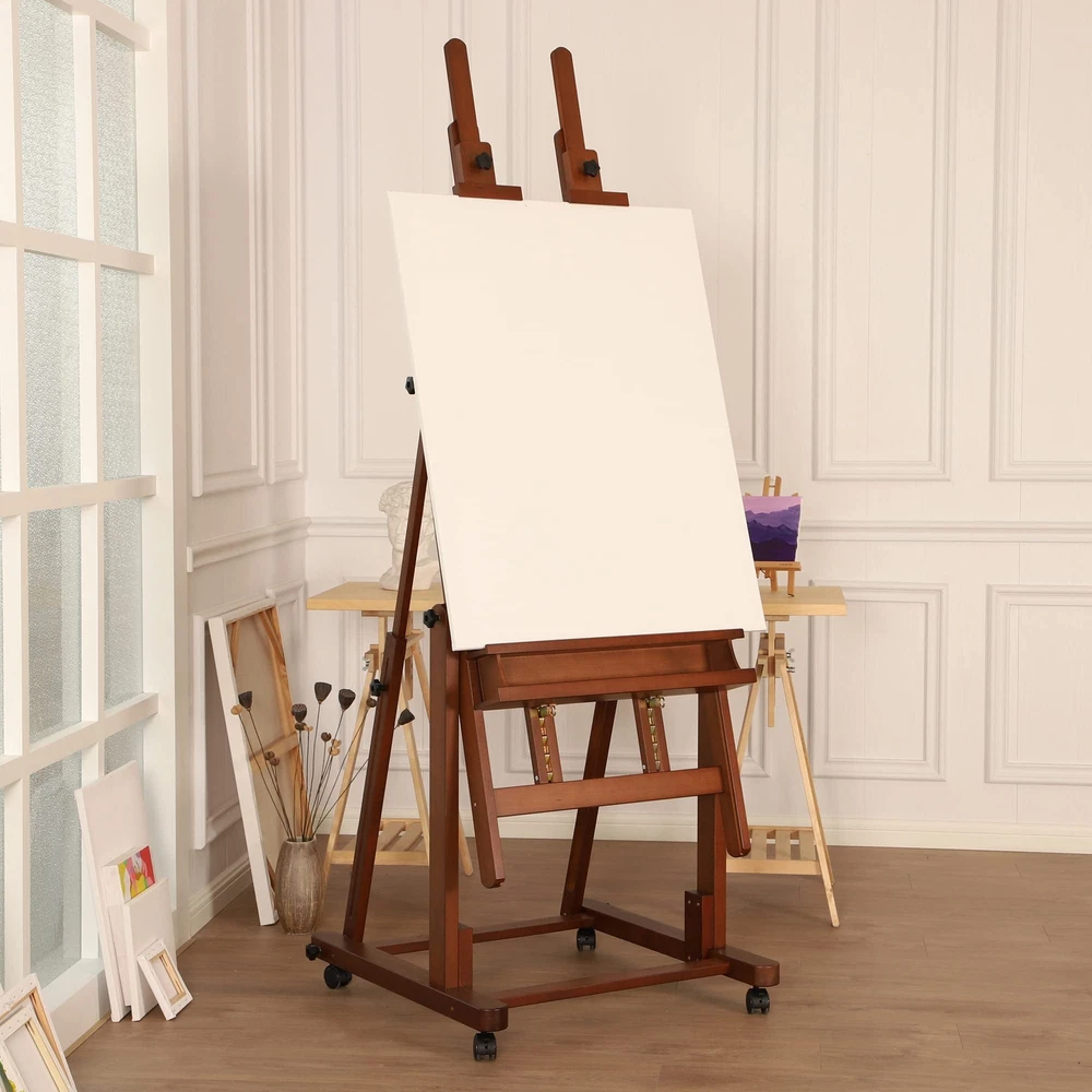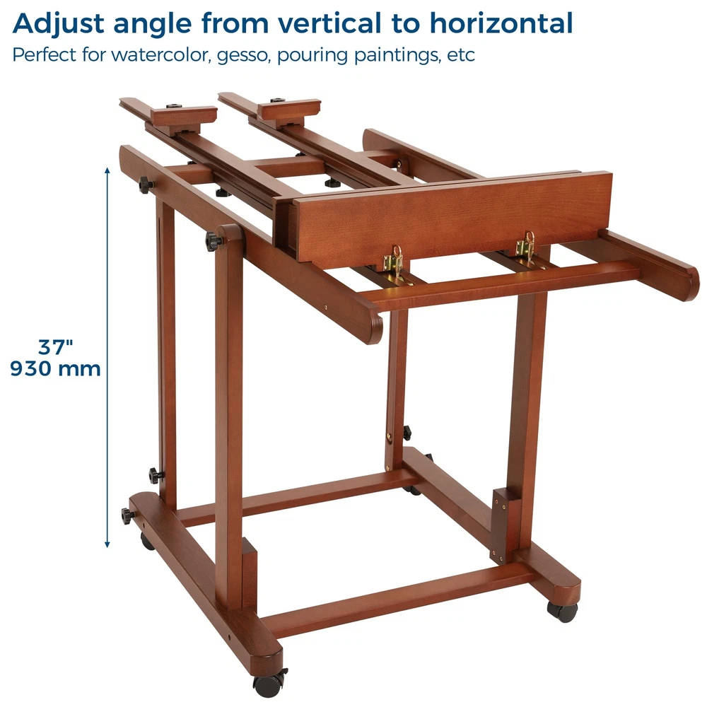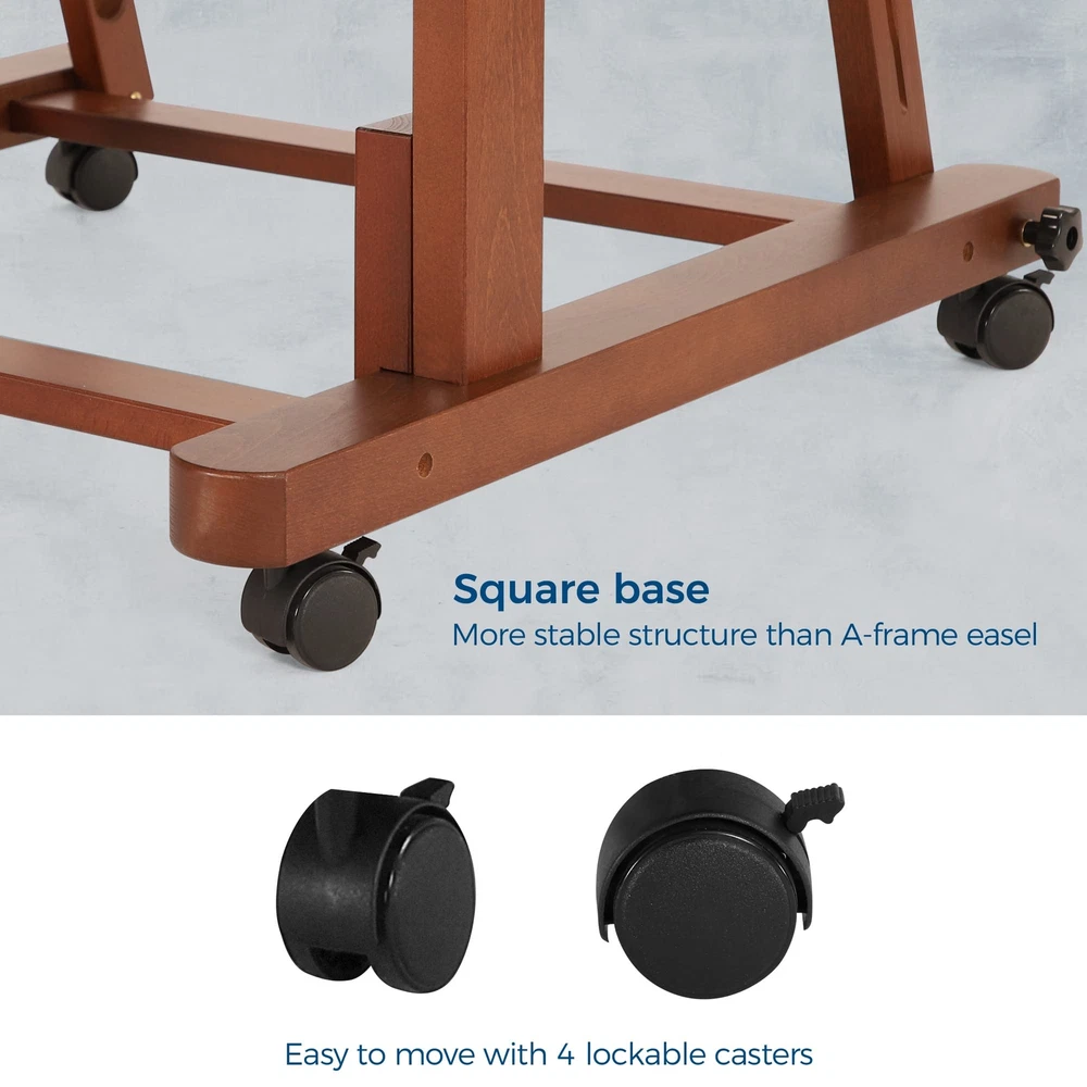 VISWIN Double Mast Extra Large H-Frame Easel, Hold Canvas up to 83", Tilts Flat, Adjustable Solid Beech Wood Heavy Duty Easel Stand with Large Storage, Movable Art Easel for Painting Adult, Artist - W [Premium Beechwood] This extra-large h-frame easel is crafted from German beech wood, ensuring sturdiness and durability. It's designed specifically for master artists and large studios. With an exceptional load-carrying capacity and an extendable double mast, you can create stunning masterpieces on wider and larger canvases. Comes with detailed instructions and a corresponding numbering system on the wood and hardware for easy assembly. [Flexible & Free Adjustments] This convertible painting easel is adjustable from horizontal to vertical with simple knob twists. It's 37" in height when in the horizontal position, perfect for painting techniques that require fluid pigments, like plaster and varnish paintings. By pulling up the center mast, you can put a larger canvas, while the metal ratchet helps to adjust the tray. Whether you want to stand or sit while working, this easel has you covered. [Spacious Double-Layer Tray] The double-layer tray provides ample storage space for all your painting supplies. We've widened the upper layer to accommodate frequently used supplies and increased the depth of the storage box to 4". This allows you to store more brushes, paints, and other art supplies, making your creations more convenient and organized. The multifunctional floor easel is undoubtedly a worry-free choice for artists of all levels. [Movable & Stable] The solid base measures 30" X 31" and equipped with 4 lockable, silent casters. You can easily press down on the brake pads to lock the casters in place and unlock them by pressing them up. Even individuals with little strength can easily move this heavy-duty easel stand without any harsh noises. The inclined vertical structure provides added stability to the easel, ensuring your artwork stays put while you work. [LIFETIME Guarantee] VISWIN is committed to creating products that can meet the needs of all those who love to paint and encourage people to enjoy the fun of creation. Shopping should be enjoyable, we provide every customer a lifetime guarantee. If you have any questions, we will try our best to satisfy you. Shipping We offer FREE shipping on all orders! We use a selection of shipping services such as UPS, FedEx, USPS etc. We only ship to the lower 48 states, no APO/FPO addresses or PO Boxes allowed. Local pickups and combined shipping options are not provided at this time. Return You can return a product for up to 30 days from the date you purchased it. Any product you return must be in the same condition you received it and in the original packaging. Please keep the receipt. Payment We accept payment by any of the following methods: PayPal Please pay as soon as possible after winning an auction, as that will allow us to post your item to you sooner! Feedback Customer satisfaction is very important to us. If you have any problem with your order, please contact us and we will do our best to make you satisfied. Contact Us If you have any queries, please contact us via ebay. We usually respond within 24 hours on weekdays. Please visit our eBay store to check out other items for sale! Thank you for shopping at our store.