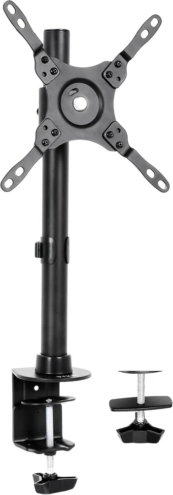 Ultrawide Screen Desk Stand - Fits most ultra-wide monitors, regular monitors, and TV's up to 42??? in size and 22 lbs in weight. This is a standard VESA mount with 75x75mm, 100x100mm, 200x100mm, and 200x200mm mounting holes. Articulation & Height Adjustment - Enjoy ergonomic viewing angles with an adjustable mounting bracket offering +45?? to -45?? tilt, 90?? swivel, 360?? rotation, and height adjustment along the center pole. Your monitor can be placed in portrait or landscape orientation to fit your desired layout. Mounting Options - This solid steel and aluminum stand installs on desks and table surfaces up to 3.25" in thickness via the heavy-duty C-clamp or optional grommet mount. Easy Assembly - All hardware and instructions are provided so you can get your new stand assembled and screen mounted in no time! We've Got You Covered - Sturdy steel design is backed with a 3 Year Manufacturer Warranty and friendly tech support to help with any questions or concerns.