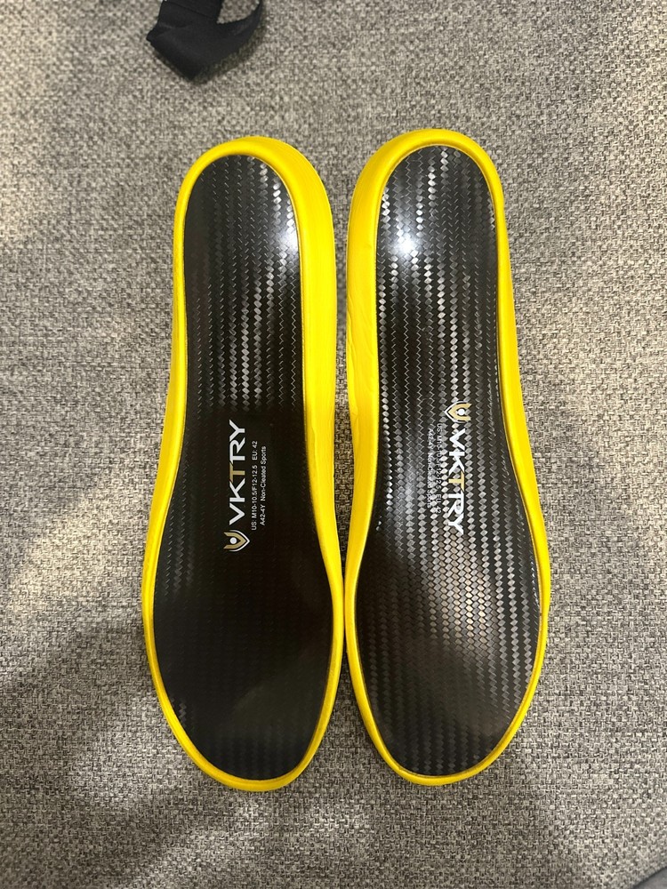 These VKTRY carbon fiber insoles are brand new and have never been worn. They were a gift but unfortunately did not fit. Designed to provide maximum energy return, comfort, and support, they are perfect for athletes or anyone looking to improve performance and reduce fatigue. Size: Men’s 10–10.5 Condition: New, never worn MPN: A42‑4Y Made in the USA Lightweight and durable carbon fiber construction Great for running, walking, or everyday use. Ships securely and ready to go!