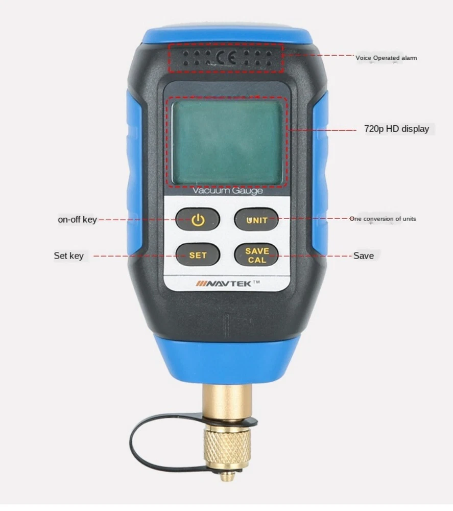 Features: 1. 100% brand new and high quality. 2. Pocket design make it more convenient to carry. 3. Large screen for easy reading. 4. Supports four vacuum units, overrange protection and zero setting. 5. Suitable for atmospheric environment Specification: Condition: 100% Brand New Model: VMV-1 Maximum Overload Pressure: 72psi/0.5Mpa Resolution: 0.01 (<10pa), 0.0001 (<10mbar), 0.0001 (<10mmhg), 1(<30000 Micron) Measurement Accuracy: 2-100Pa (Digits ± 5%) Operating Temperature: 0-50°C(32-122℉) Units: Pa, mBar, mmhg, Microns Refresh Rate: 0.5 Seconds Interface: 1 * 7/16-20UNF Sensor: 1 * Pirani Sensor Automatic Shutdown: 10 Minutes Backlight: 20 Seconds Beep Horn: 90 DB(closes after 10 seconds) Weight: Approx. 409g / 14.4oz Size: Approx. 14.5 * 6 * 3cm / 5.7 * 2.4 * 1.2in NOTED: This product needs to be used in a closed system, otherwise the data is meaningless.