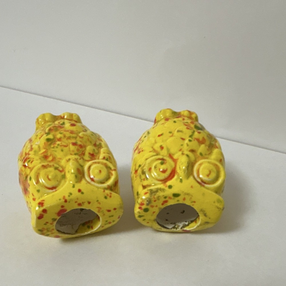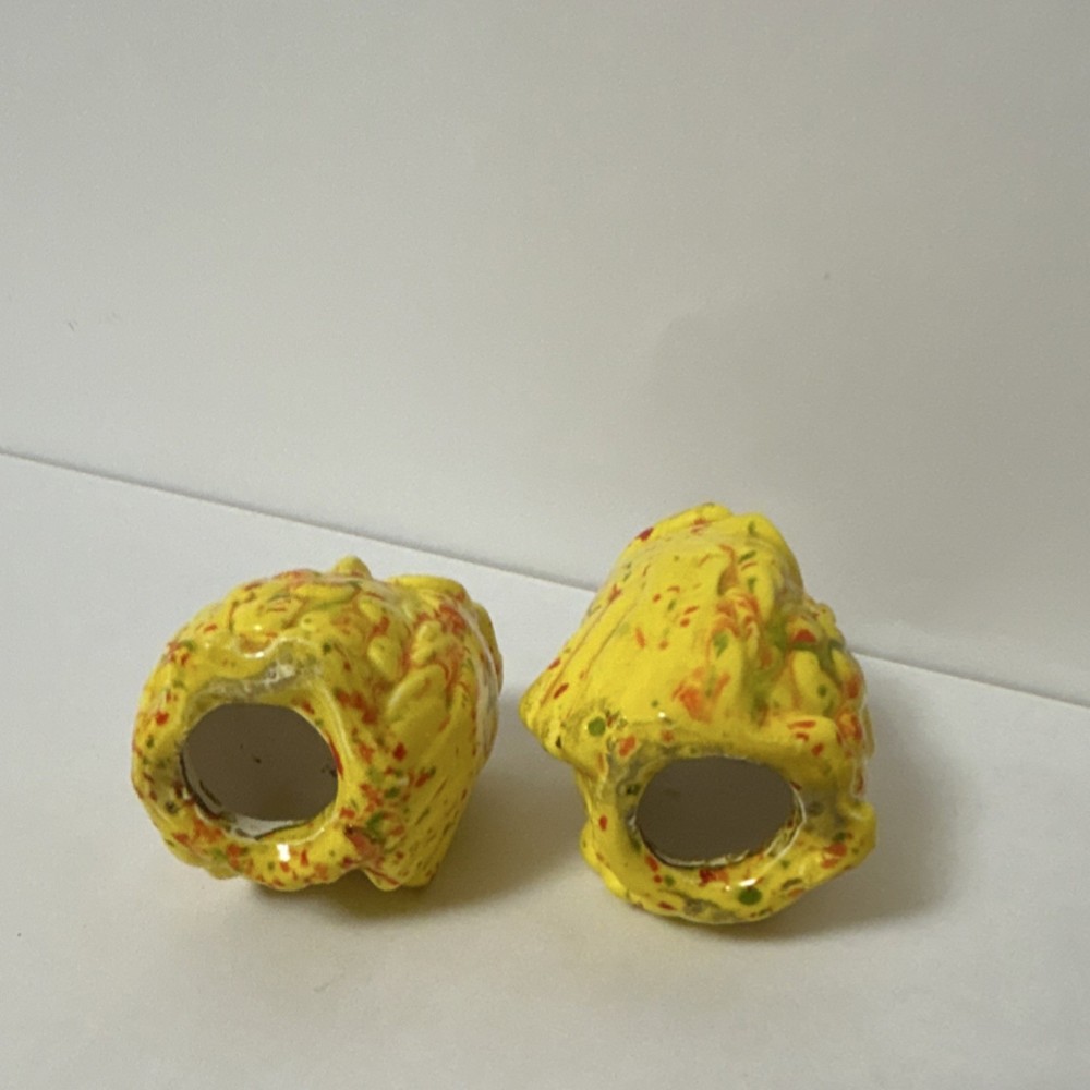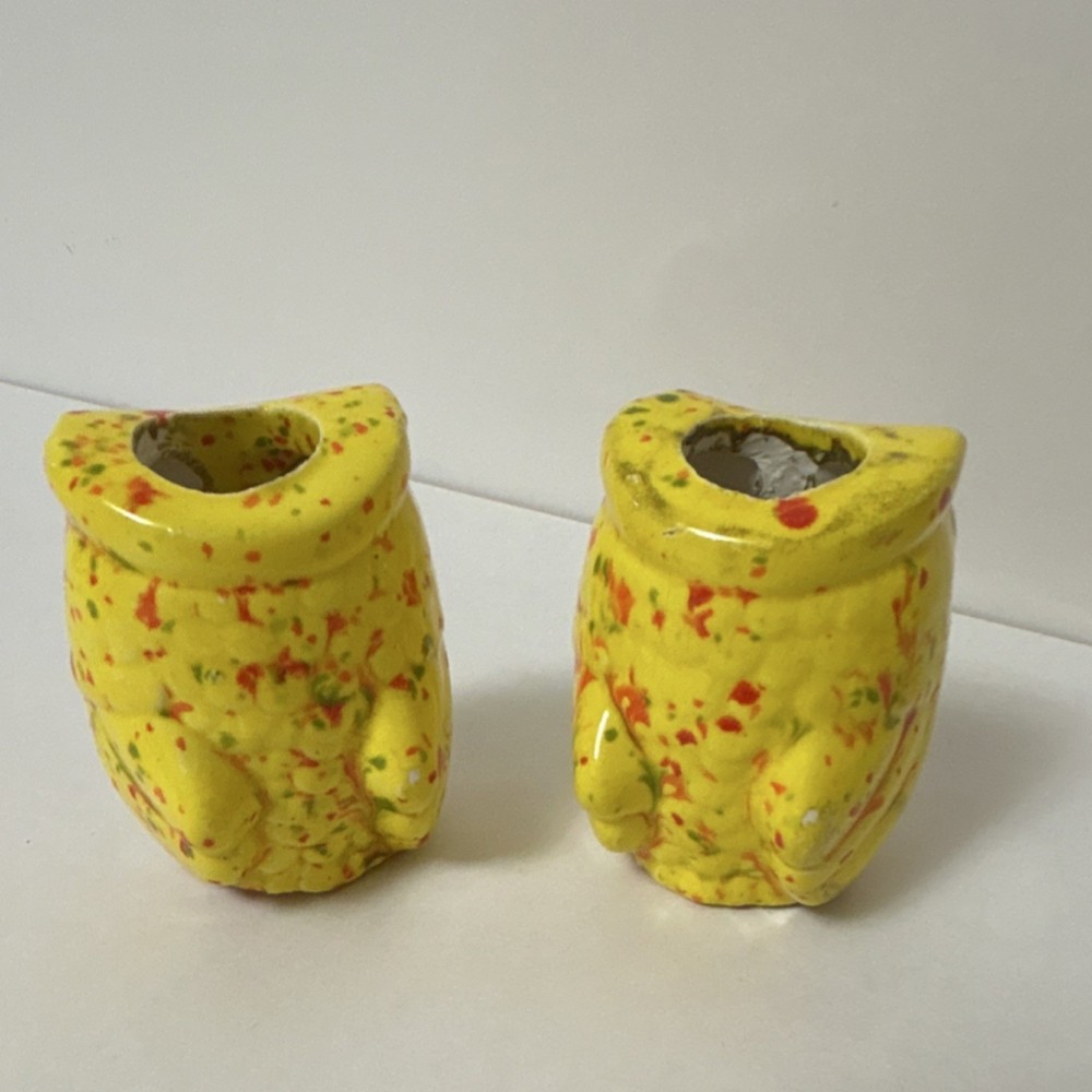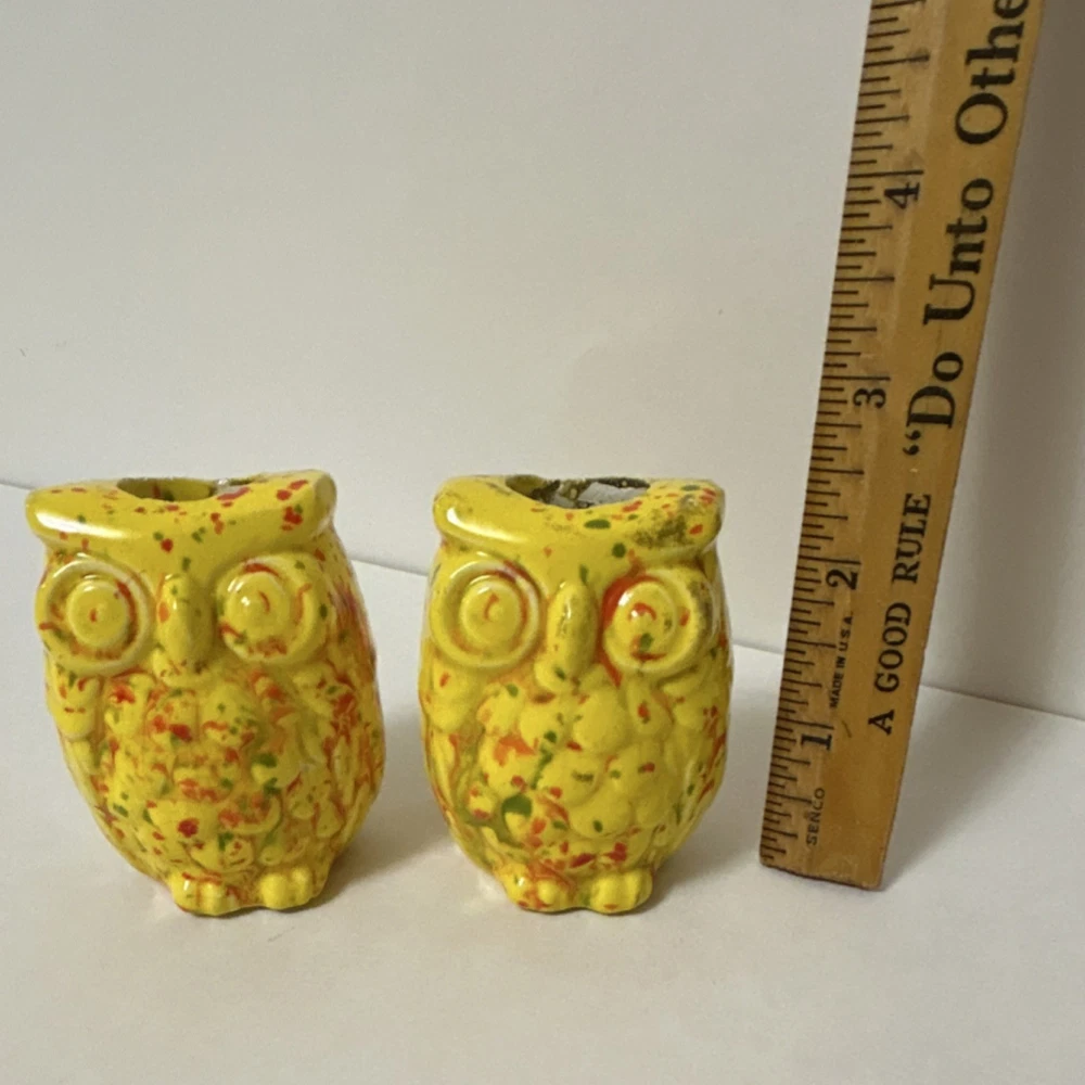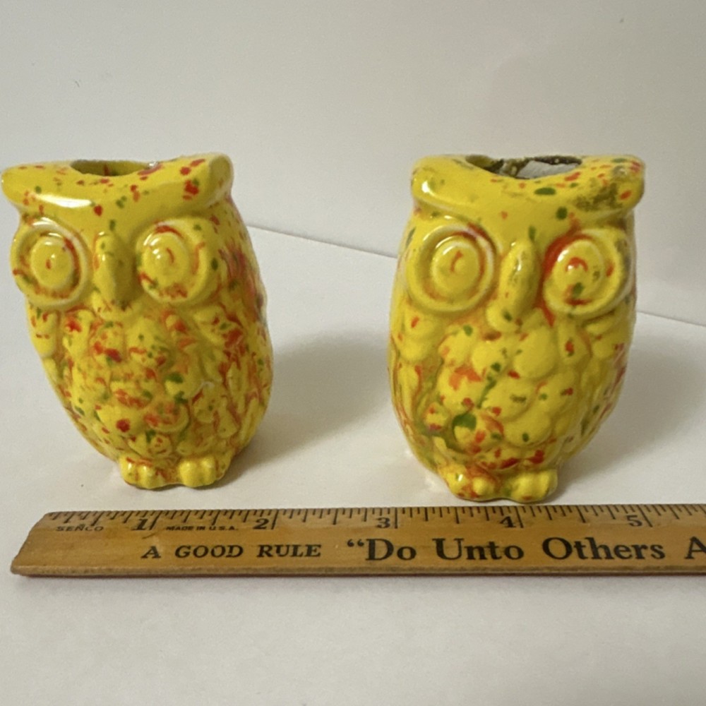 These beautiful vintage 70s Yellow Speckled Ceramic Owl Macrame Beads are sure to spice up any project. Set of 2. Approximately 2 1/2” tall and 2” wide.