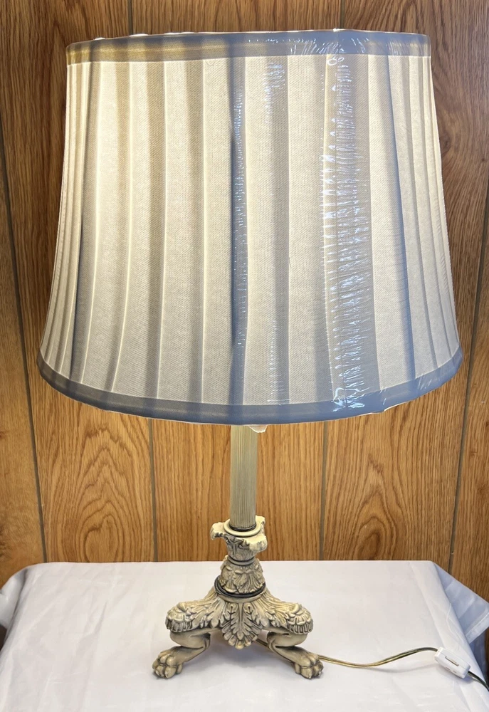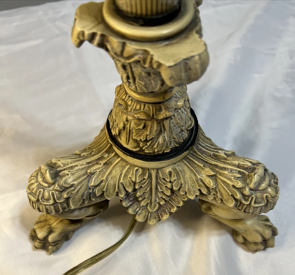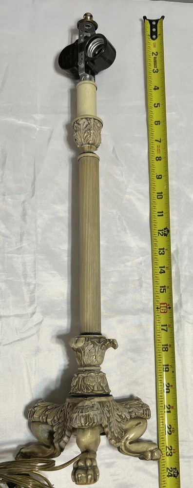 ** BEAUTIFUL VINTAGE CHAPMAN FRENCH EMPIRE ANIMAL CLAW / FILAGREE 23” INCH TABLE LAMP** & WEIGHS JUST OVER 4lbs ** CLAWS MEASURE 7” APART FROM EACH OTHER ** DUEL BULB LIGHTING ** MADE & PAINTED TO LOOK LIKE A COLUMN / OR STATUE ** BASE IS METAL UNKNOWN IF CAST STEEL OR PAINTED BRASS OR BRONZE ** COMES FROM NON SMOKING HOME ** HAD ONE OWNER BEFORE ME ** GREAT PIECE FOR ANY KIND OF ROOM ** SHADE NOT INCLUDED IT IS FOR MODELING LAMP USE FOR MY STORE ONLY .. SORRY ** WILL BE PACKAGED & SHIPPED WITH EXTRA CARE ** SHIPS WITHIN 48 BUSINESS HOURS OF PURCHASE