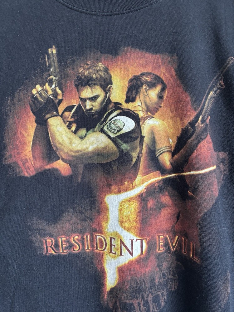 This Tshirt is for those fans of the resident evil video game universe. Featuring Chris and Sheva main characters of the video game. The Shirt have a little stain mark but honestly looks like part of the shirt. Please see all pictures. Measurements: Length: 29.5” Width: 22.5” Size: L
